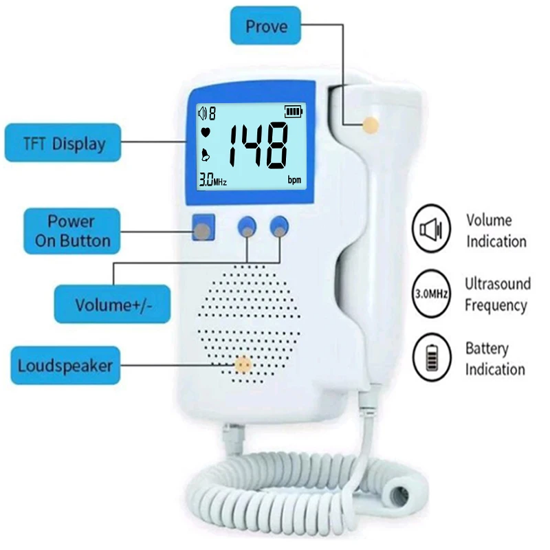 Допплер фетальный портативный для беременных, с частотой 3,0 МГц