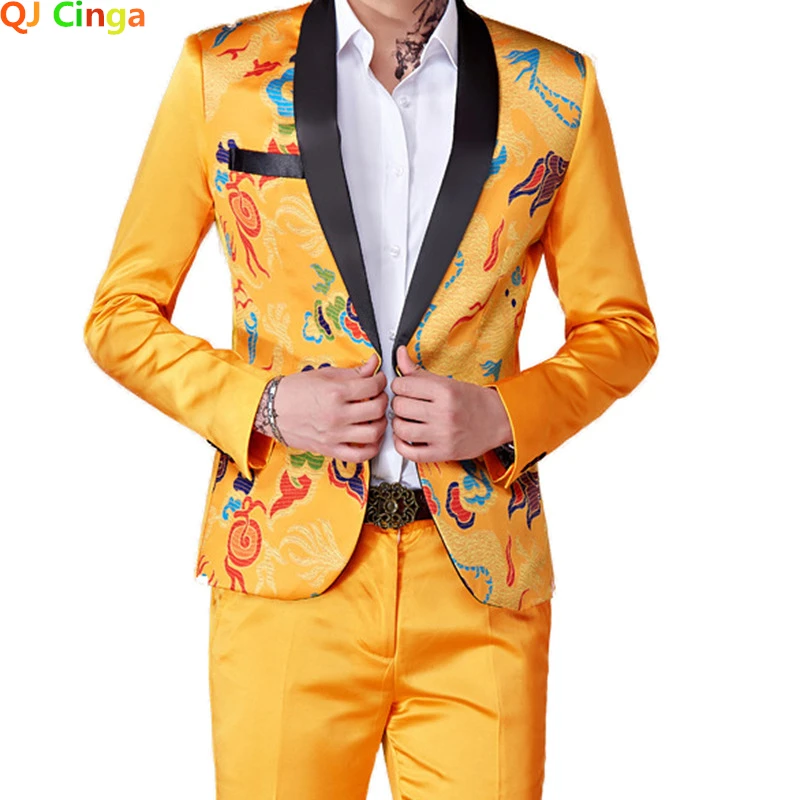 Новинка 2022, модный мужской повседневный деловой костюм с цветочным принтом, пиджак и брюки, комплект из 2 предметов, мужские яркие приталенные блейзеры, куртка и брюки