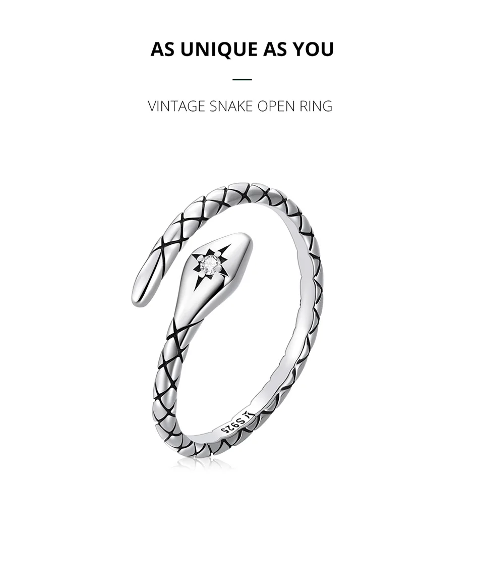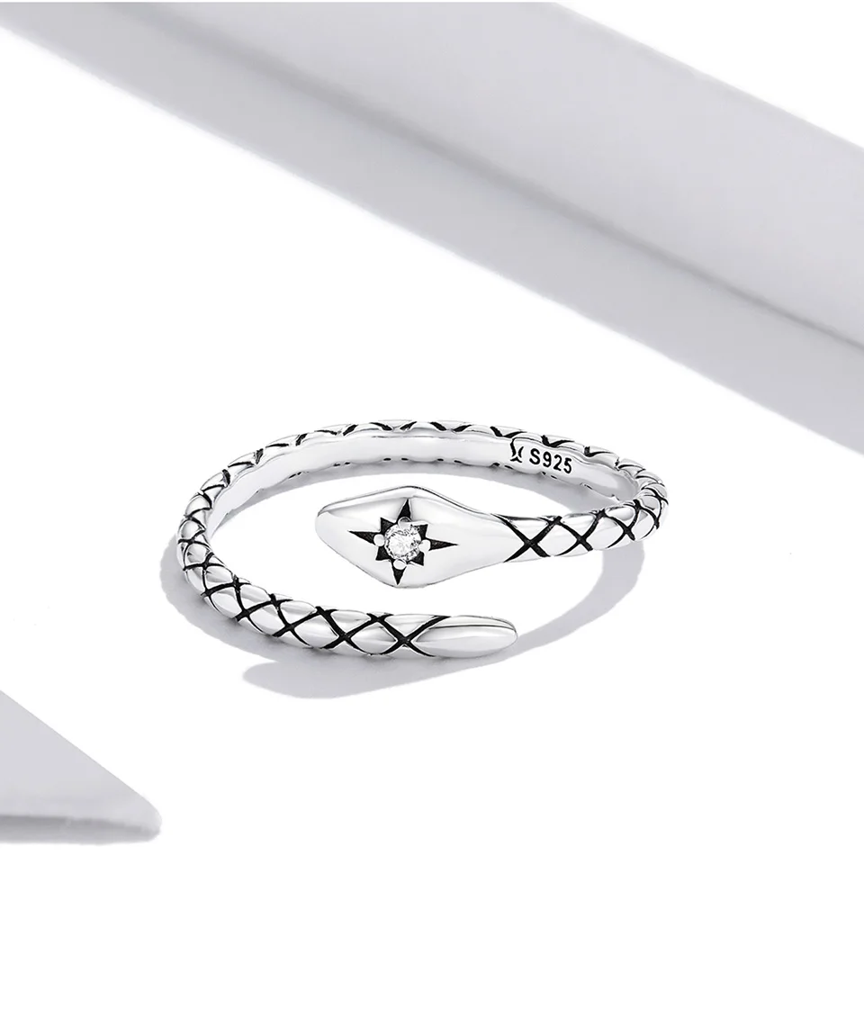❤[Бренд] bamoer❤[Вес] 1,5 г❤[Материал] Серебро 925 пробы + циркон + окисление❤[Стиль] Мода, классика, элегантность❤[Случай] годовщина, помолвка, вечеринка, свадьба, назначение❤[Описание] винтажное окисленное серебряное кольцо в форме змеи изысканно и уникально с текстурой змеи. Голова змеи украшена Цирконом и представлена роскошным и загадочным рисунком звезды.