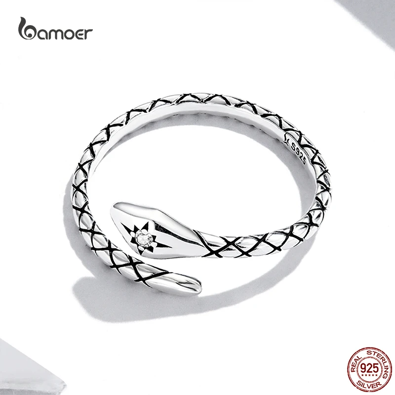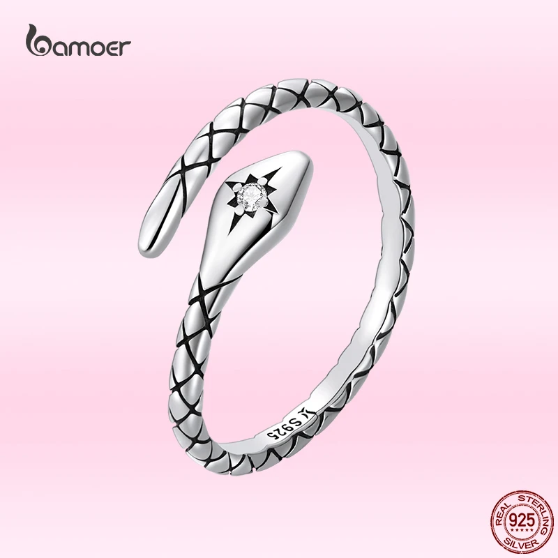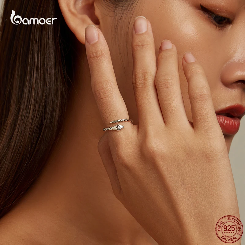Bamoer, Ретро стиль, серебро 925 пробы, змеиное Открытое кольцо для женщин, Лаки, S925, животное, кольцо для девушек, модное, для вечеринки, подходит ко всему, ювелирное изделие
