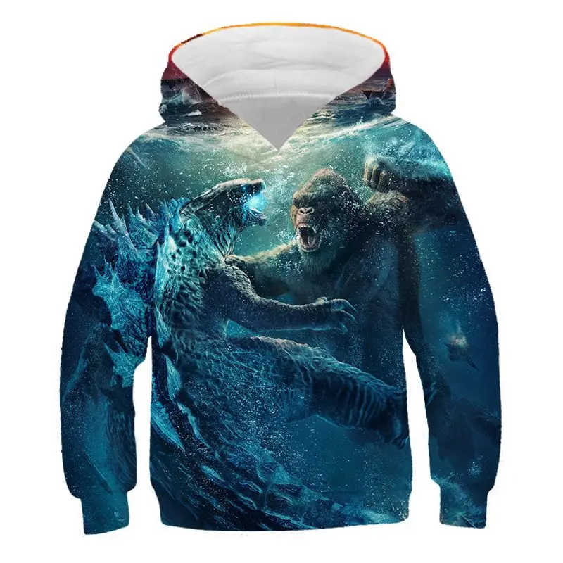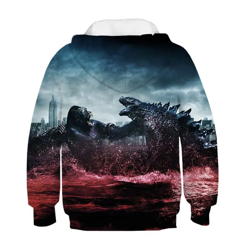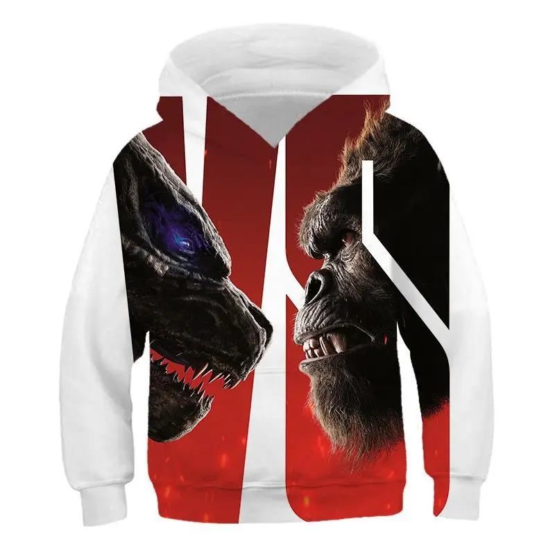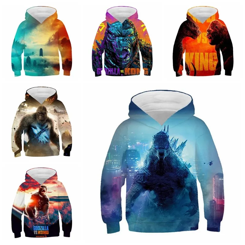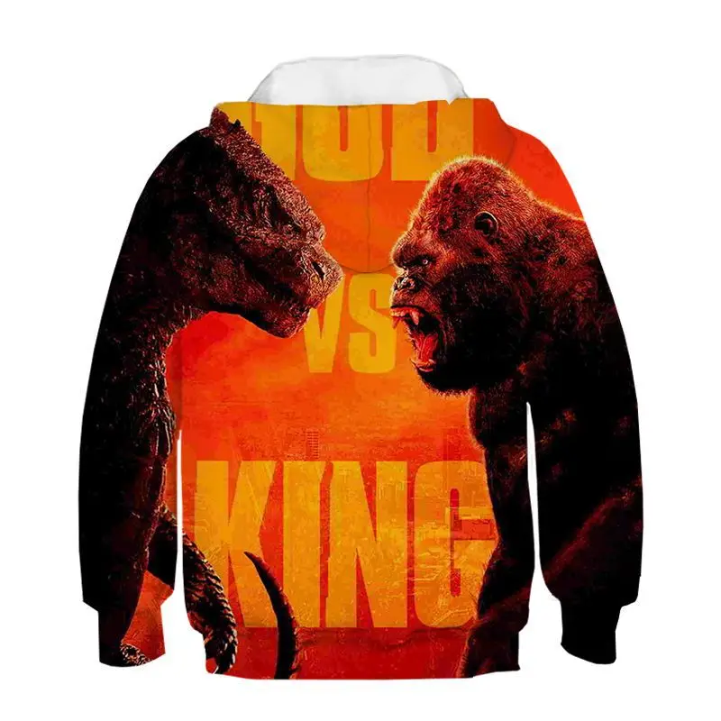 Детский свитер с капюшоном Godzilla Vs King Kong Толстовка с длинным рукавом с цифровым принтом весна-осень мультяшные костюмы для косплея Kong