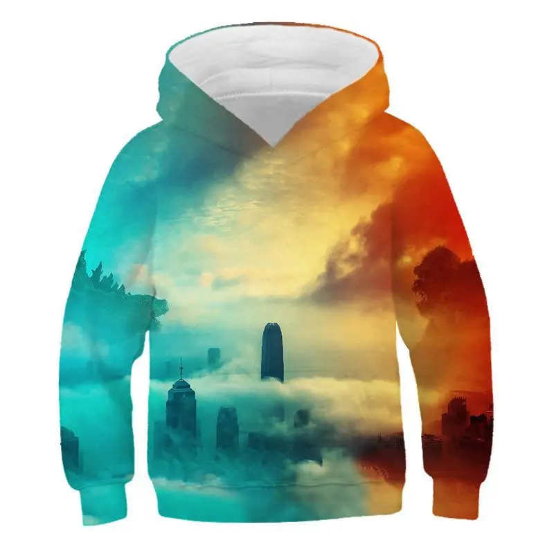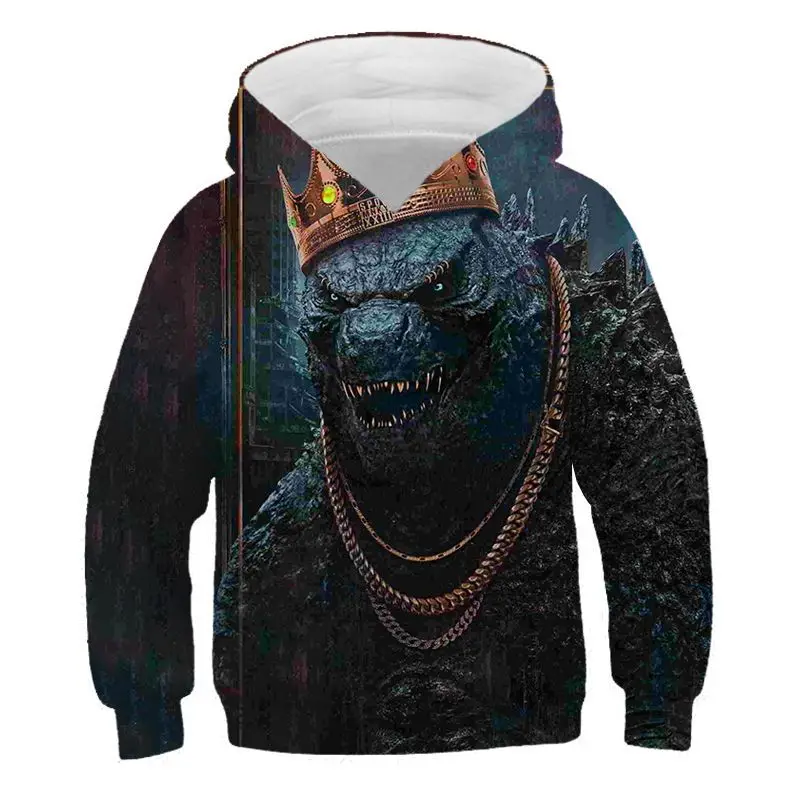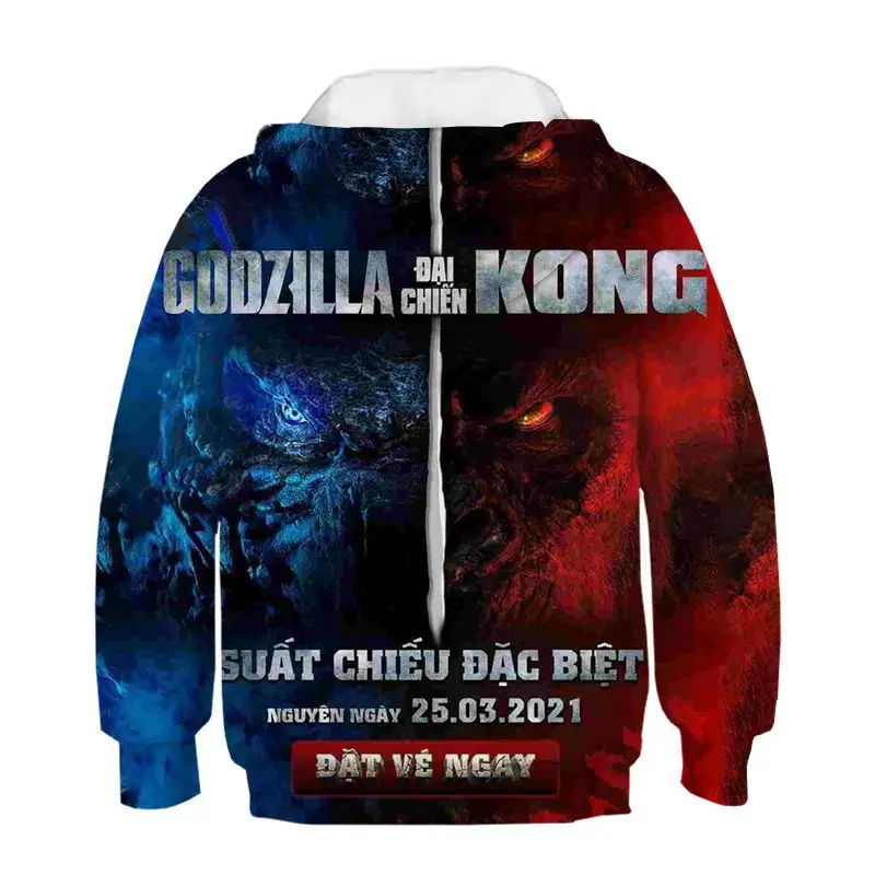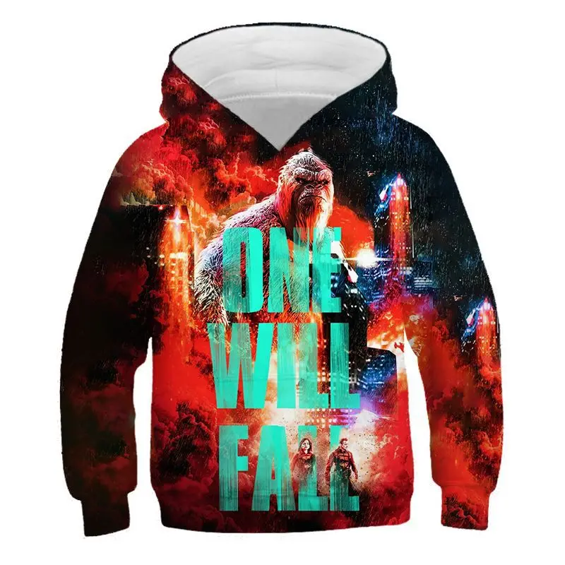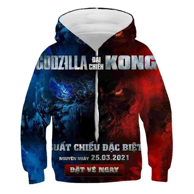 Детский свитер с капюшоном Godzilla Vs King Kong Толстовка с длинным рукавом с цифровым принтом весна-осень мультяшные костюмы для косплея Kong