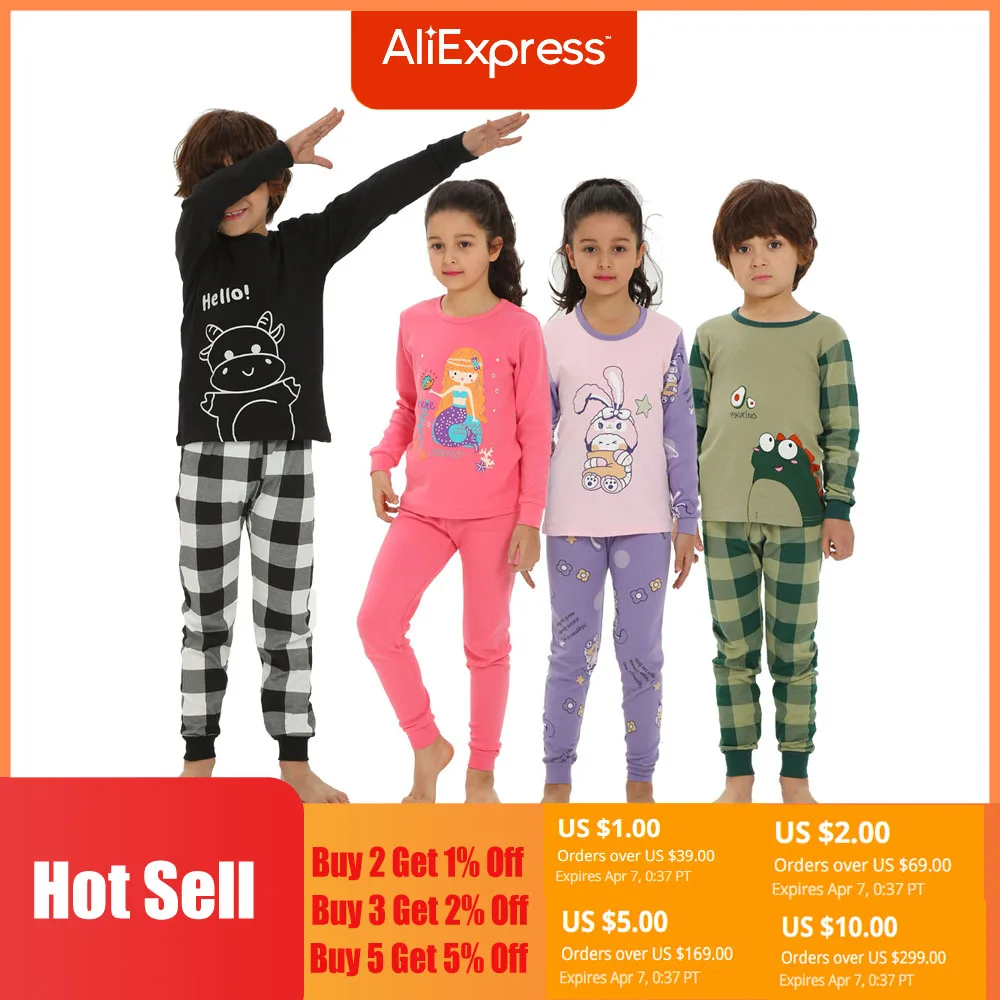 Весенне-осенние пижамные комплекты с длинными рукавами для мальчиков и девочек подходит для детей 2, 3, 4, 5, 6, 7, 8 От 9 до 14 лет