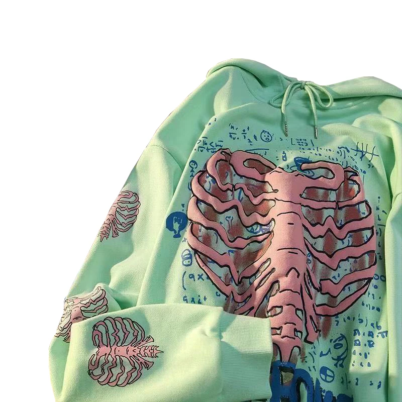 Y2K розовый худи скелет женский осенний уличный пуловер готические ...