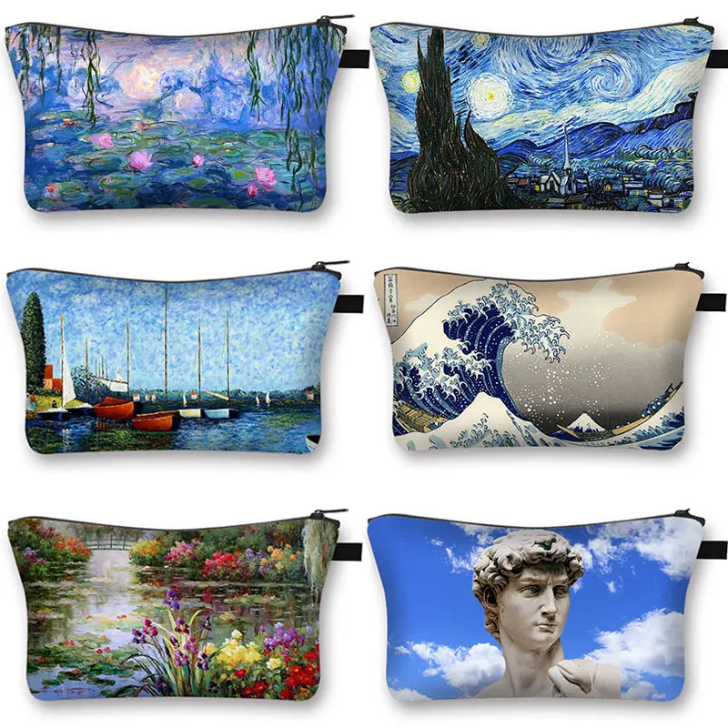 Monet Водонепроницаемая женская косметичка с принтом Звездная ночьпоцелуйВан ГогГустав Климт косметический Чехол сумка для хранения губной помады