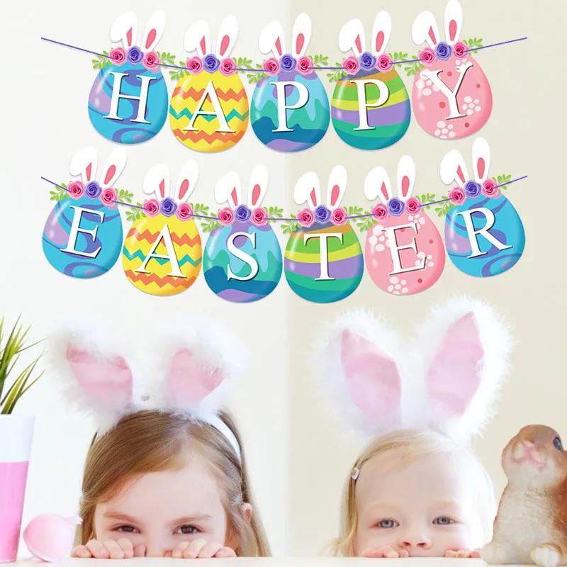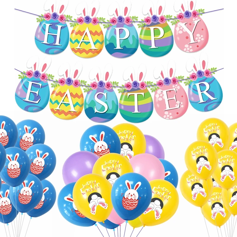 Счастливое пасхальное украшение, милые яйца кролика, латексные воздушные шары, баннер из бумаги, Весенняя тема, пасхальвечерние НКА, подвесные украшения сделай сам, детские подарки