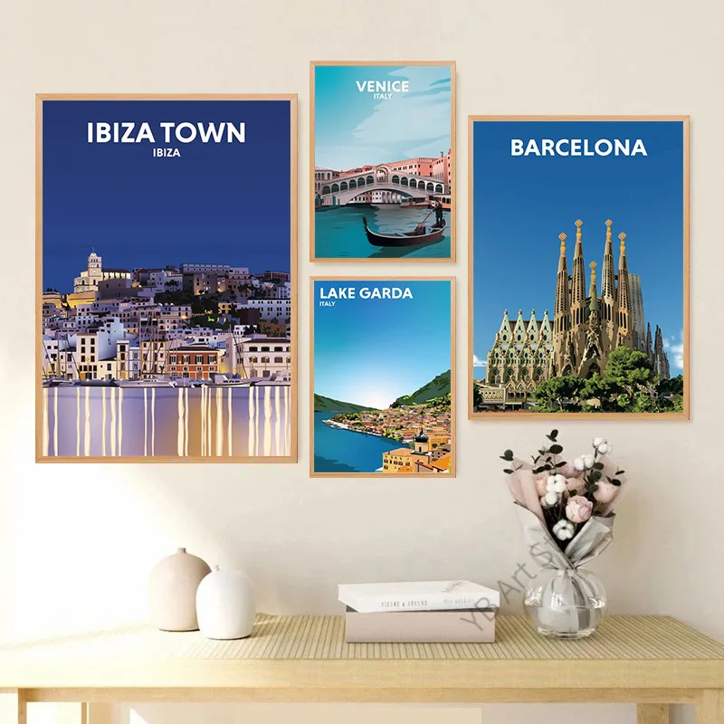Севилья, Испания, Италия, Флоренция, Ирландия, Франция, Постер путешествий, город, озеро, Гарда, холст, живопись, путешествия, настенное искусство, домашний декор комнаты