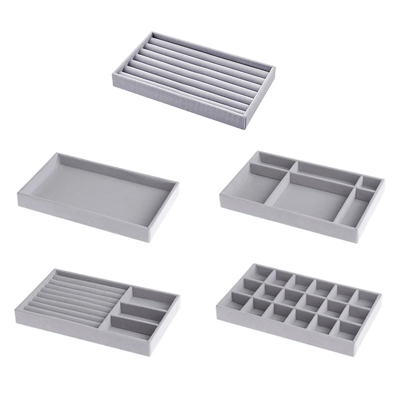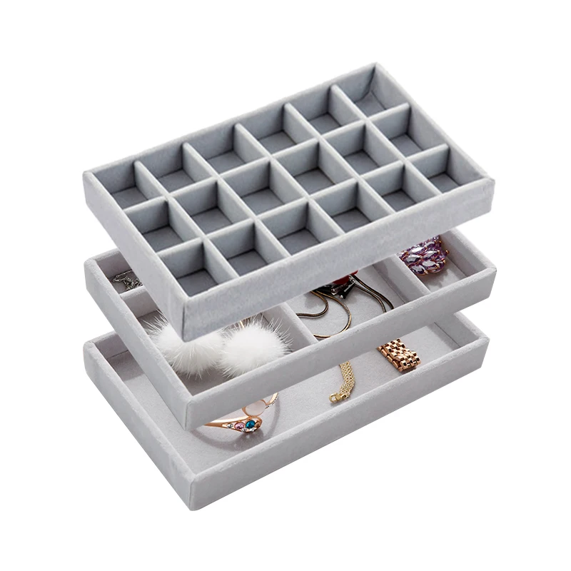 Серый бархатный Штабелируемый органайзер для ювелирных изделий, под...