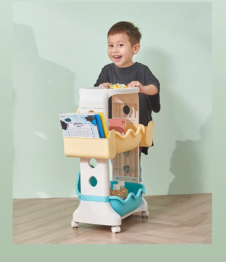 Креативный детский игрушечный стеллаж для хранения пластмассовый многоуровневый стеллаж для хранения прикроватная тумбочка для спальни Органайзер тележка для хранения