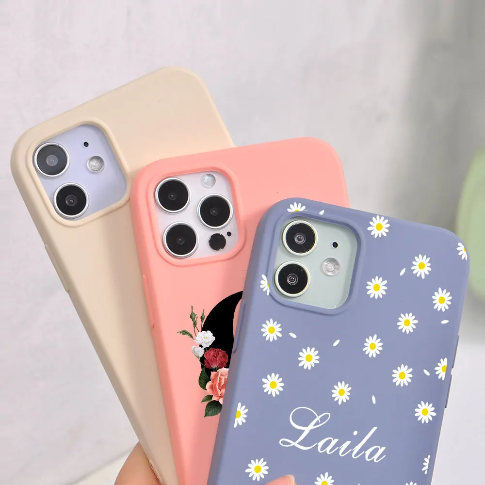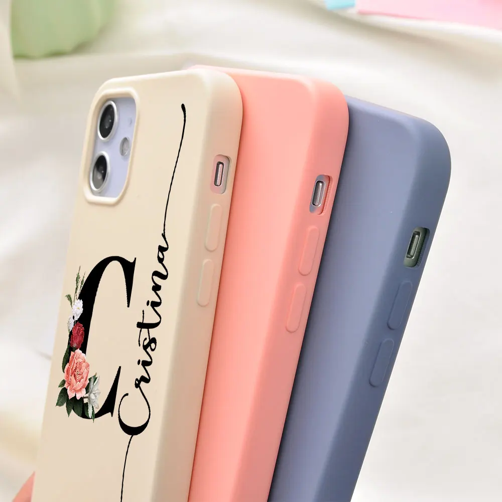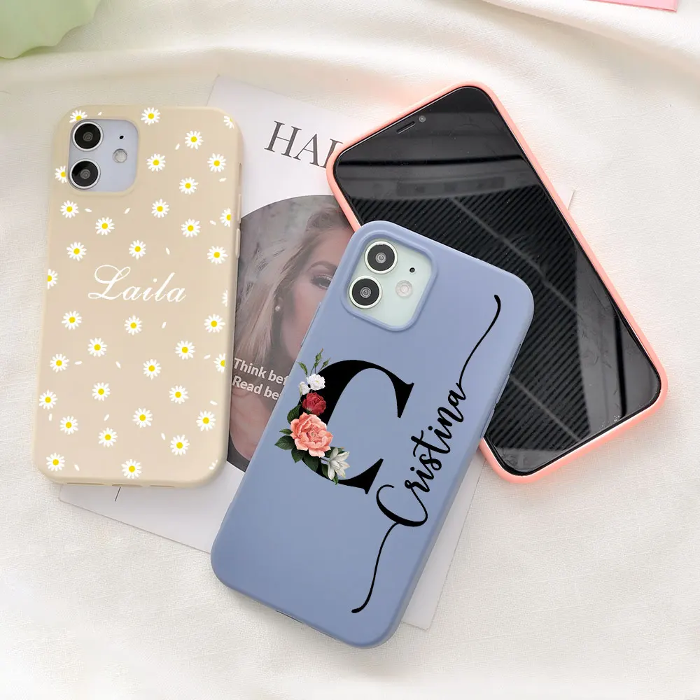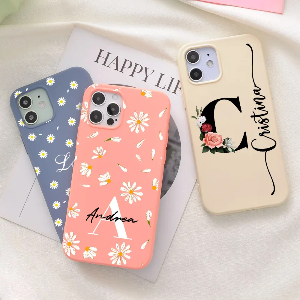 Custom Name Alphabet Daisy Phone Case For Apple iPhone 13 12 11 Pro Max X XR XS 7 8 Plus Mini Personalized Silicone Soft Cover