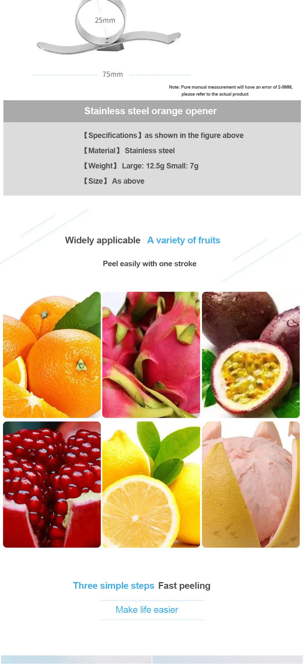 Product Description1Pcs Ring Shape Stainless Steel Orange Peelers