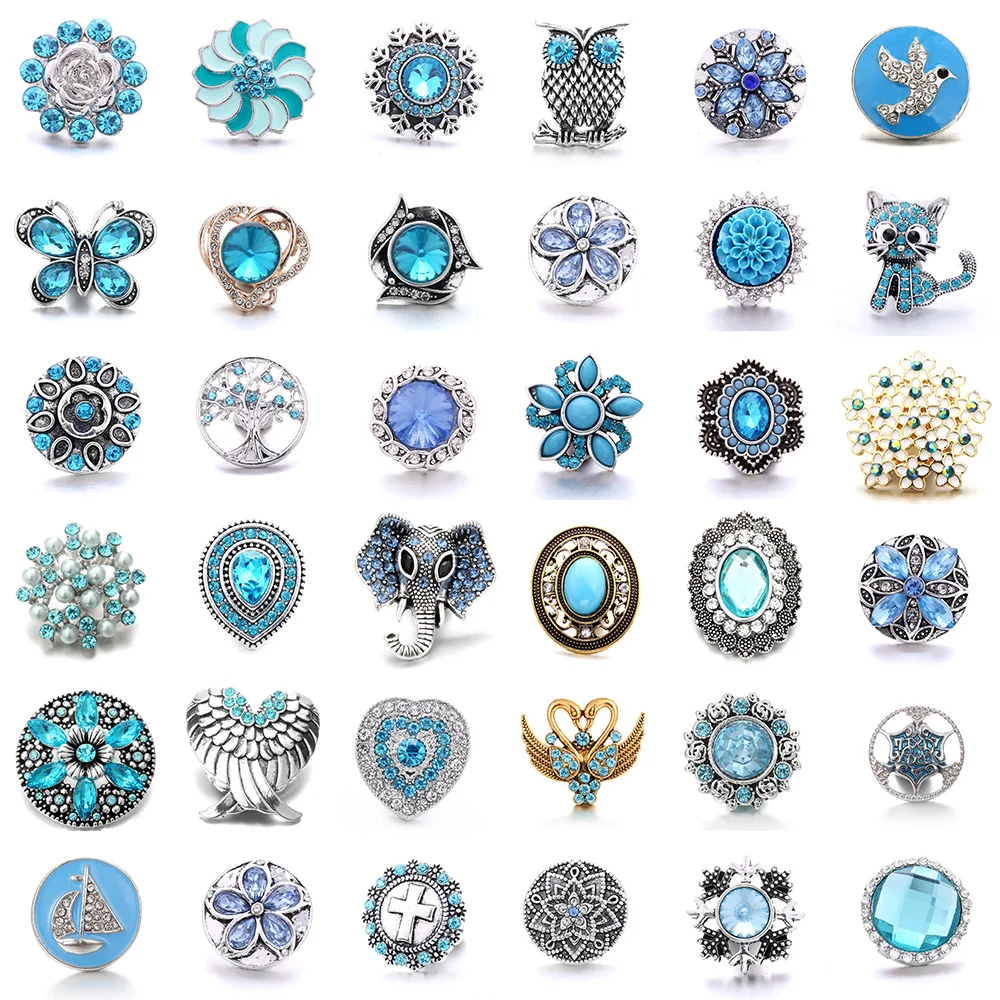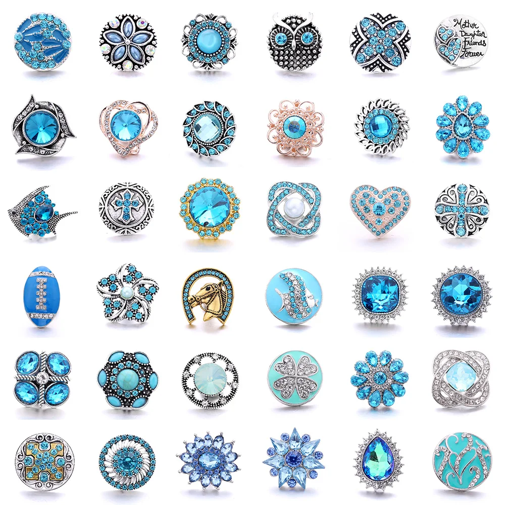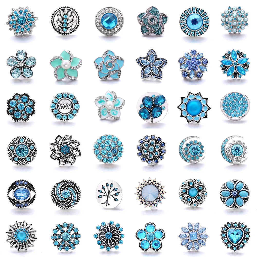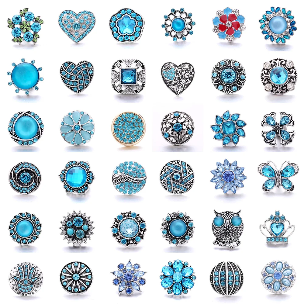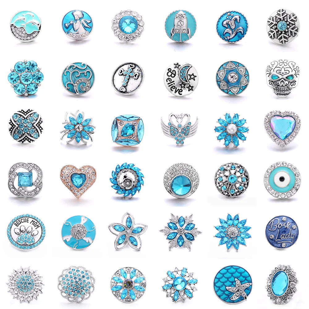 5 шт.лот, застежки для ювелирных изделий, 18 мм, застежки-пуговицы, светло-голубые стразы, 18 мм, в форме цветка, сердца, застежки для браслетов 18 мм