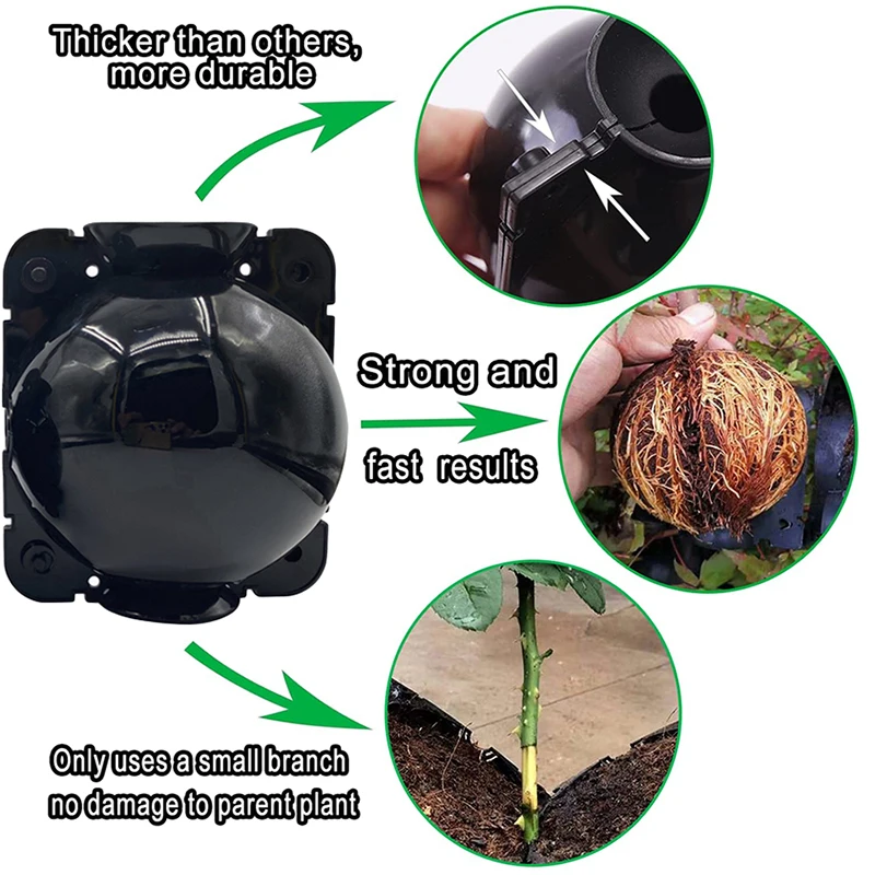 1. Используйте острые предметы для отшелушивания выбранных ветвей и шеи в форме кольца (флоем) для содействия образованию слоистых корней волос над местом.2. После того, как разрез высохнет и заживляется, используйте торфяную почву, глину и шфагнумовую смесь внутри коробки высокого давления растений.3. Прикрепите заполненный завод высоковольтной коробки к ветке балки.4. Продукт относится к обновленной версии автоматической пряжки, пряжка прочная и прочная, без обвязки (этот шаг не нужно эксплуатировать)5. Согласно различным видам деревьев, растут от 1 до 4 месяцев. После того, как корневая система заполнена, ее можно отрезать и высаживать.