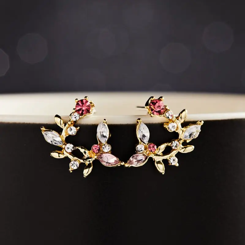 Серьги-гвоздики женские с фианитами, в форме листьев ивы, 2021