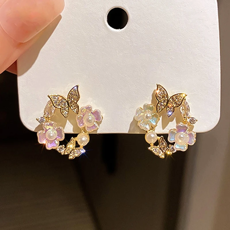 Женские серьги-гвоздики с фианитами, изящные серьги в виде бабочек с цветами, украшенные фианитами класса ААА, корейский стиль, 2022