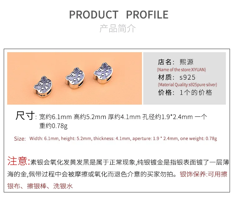 S925 Стерлинговое Серебро, тигр, чтобы сделать старый ретро Китайский Зодиак benmingnian, свободные бусины, ювелирные изделия ручной работы, DIY аксессуары