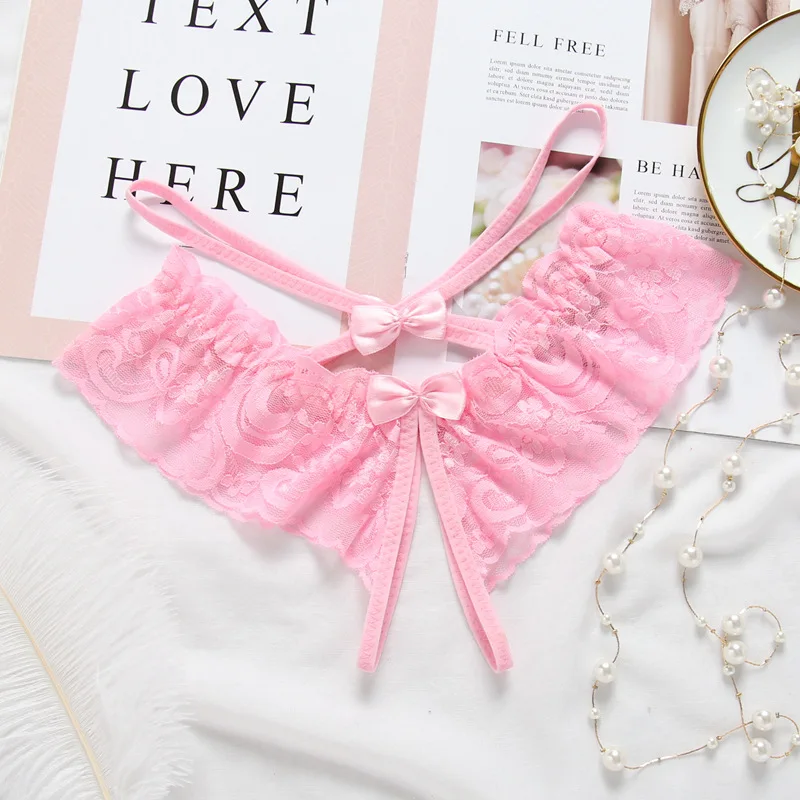 Трусики-стринги женские кружевные прозрачные, с открытой промежностью