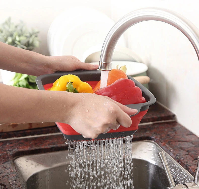 Квадратная дренажная корзина, складной дренажный дуршлаг, гибкий ск...
