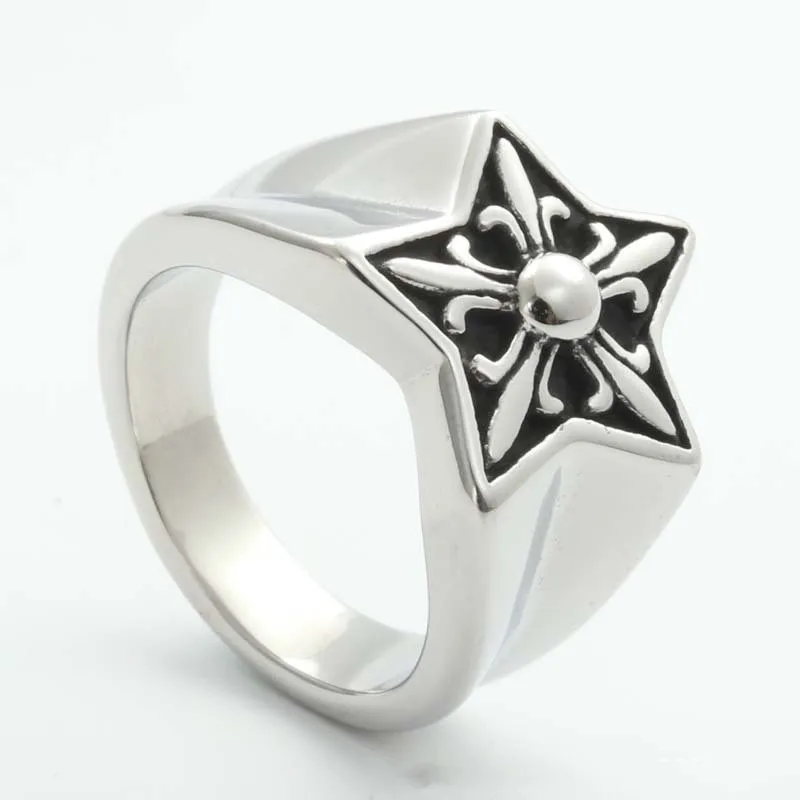 Простое мужское кольцо из нержавеющей стали с пятиконечной звездой в стиле ретро, хип-хоп, мотоцикл, рок, ювелирные изделия, оптовая продажа, подарок для парня