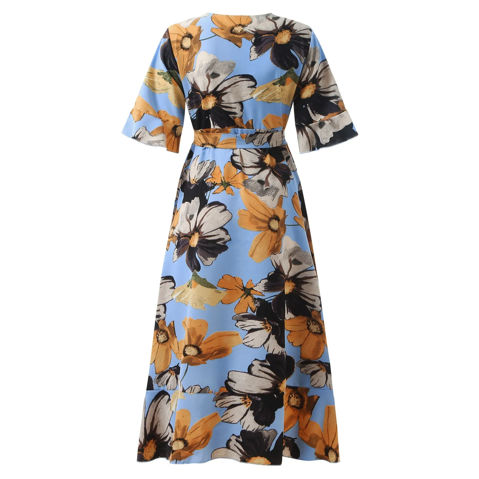 Женское платье-макси с V-образным вырезом и цветочным принтом