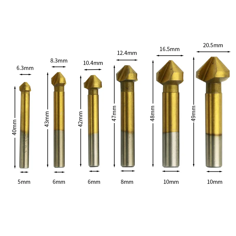 6 шт. Круглый хвостовик 3 канавки 90 градусов HSS фаска резак Концевая фреза инструмент зенкер набор сверл 6,3-20,5 мм резак сверло