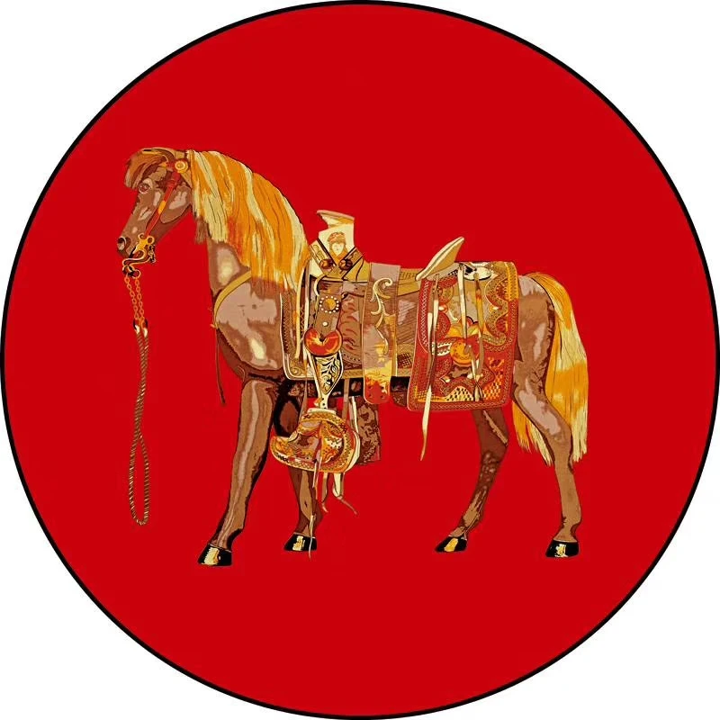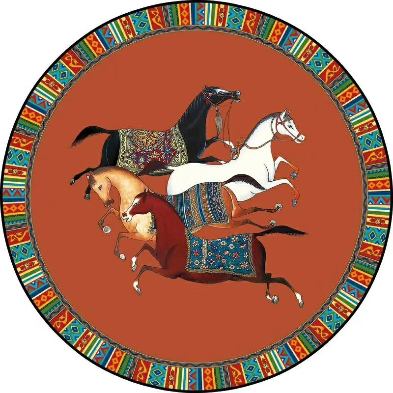 Круглый ковер в китайском стиле с изображением тигра и лошади, кове...