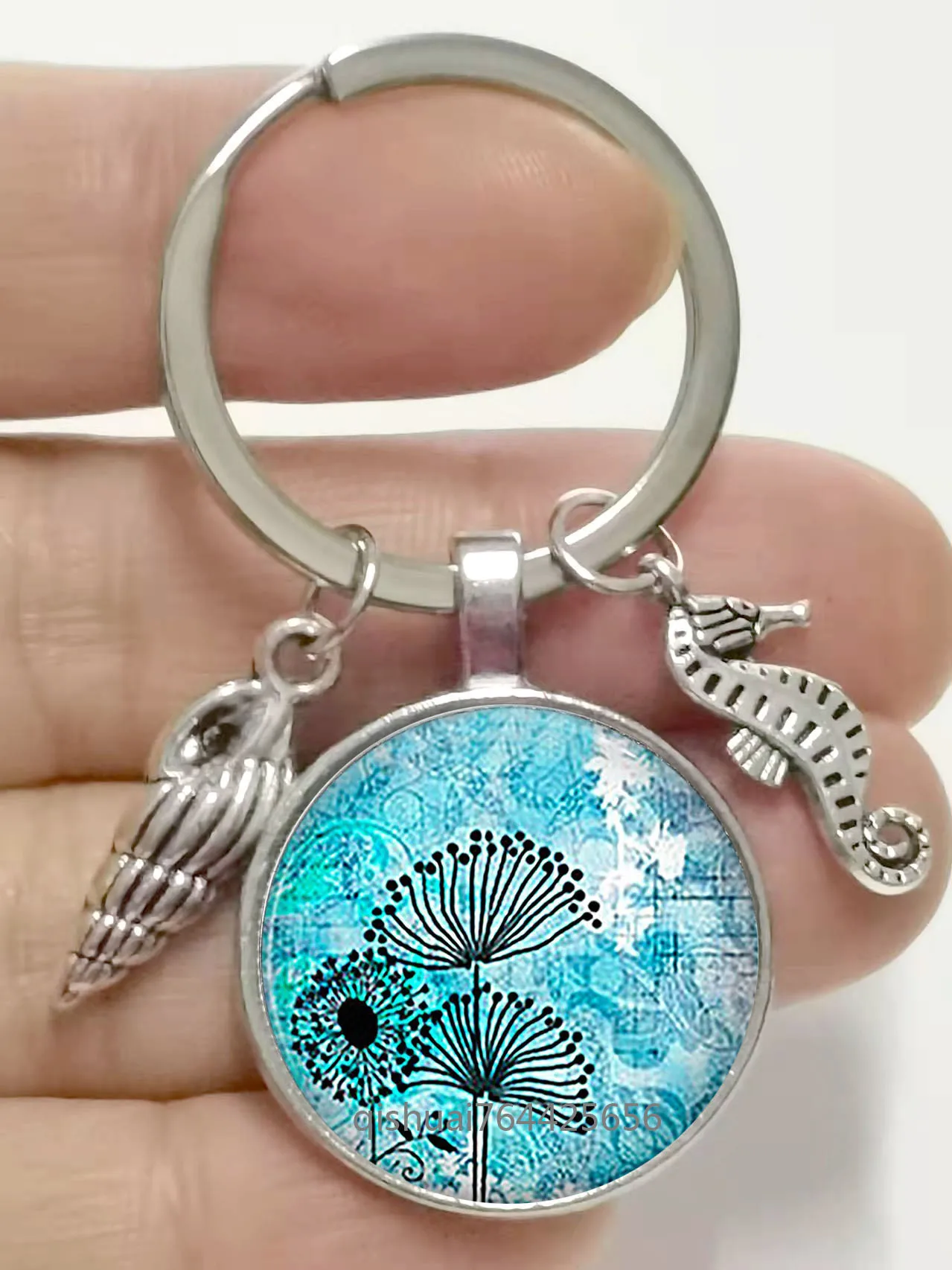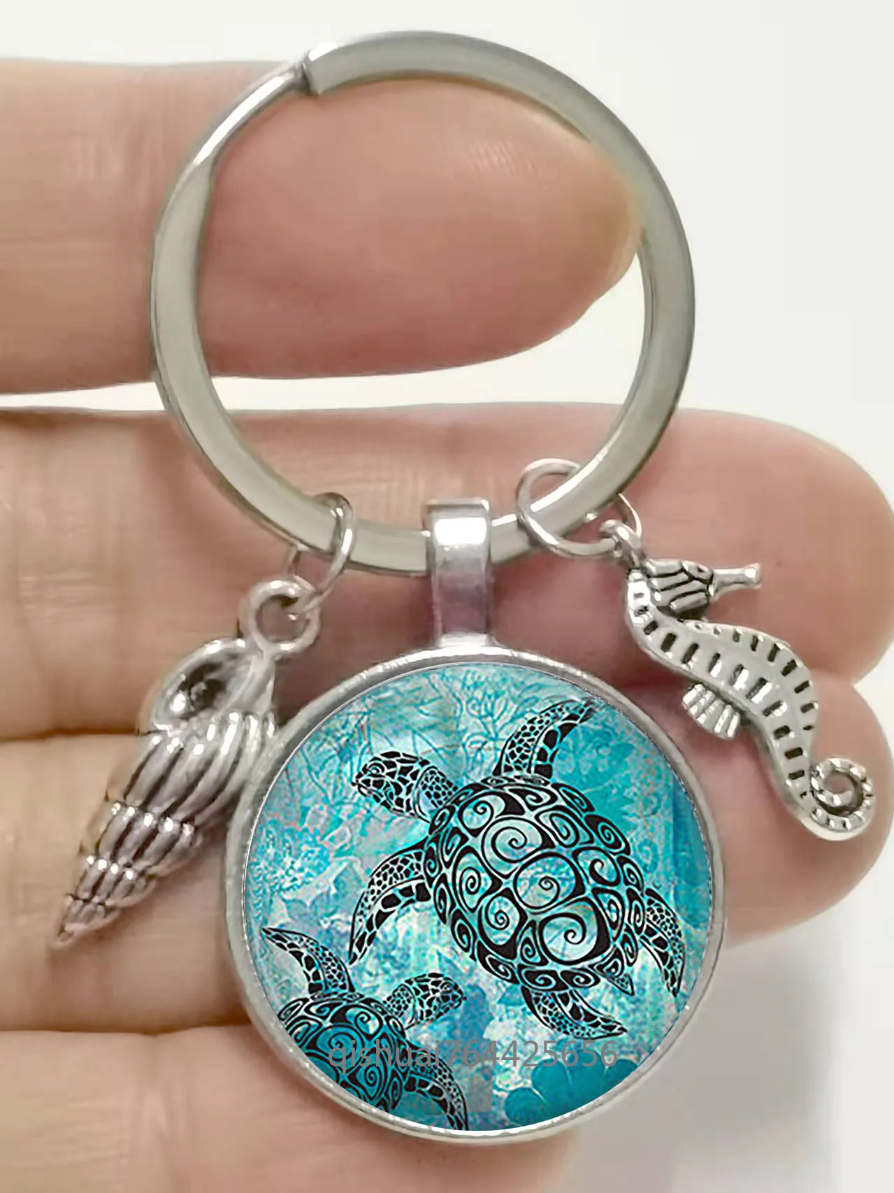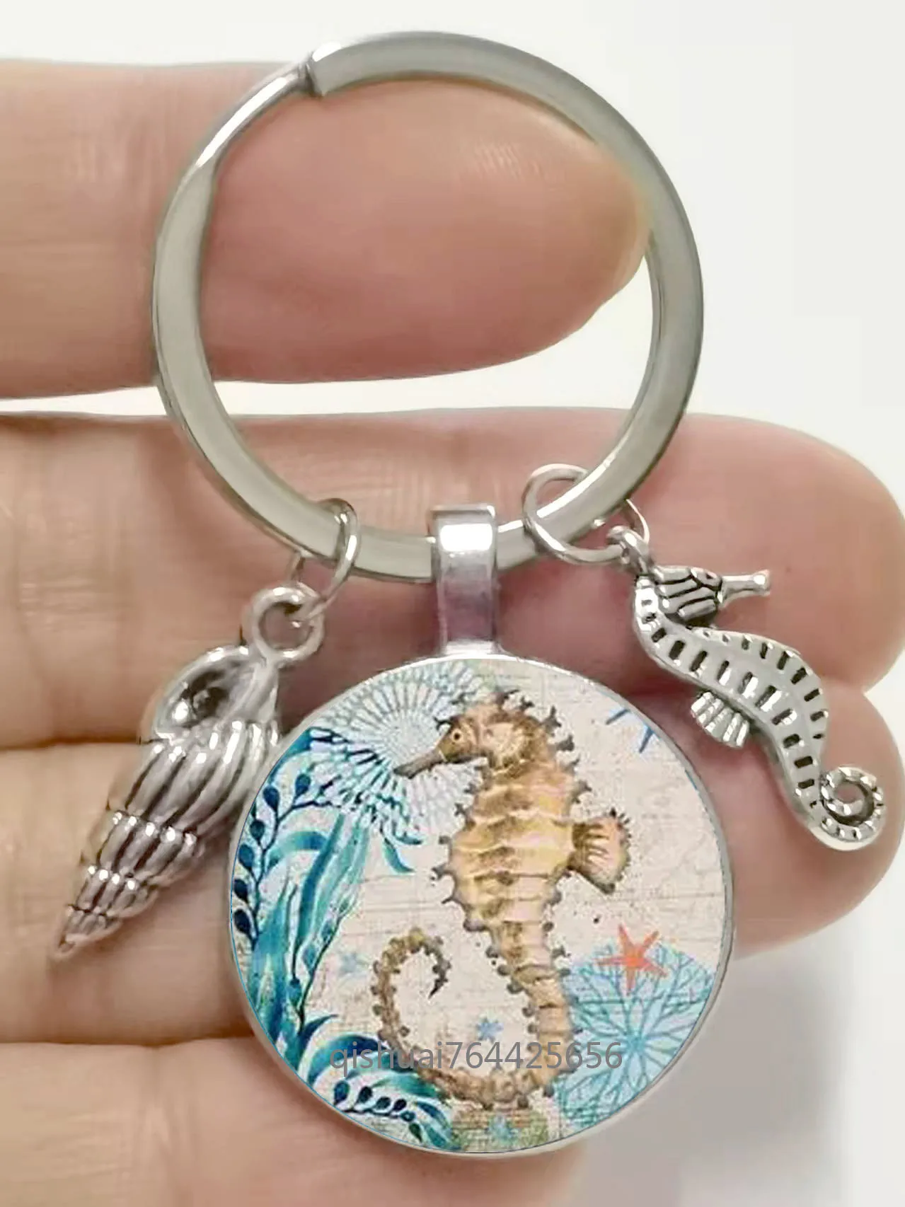Брелок для ключей из сплава 2022, 25 мм, синий океан, морская жизнь, ювелирные изделия, черепаха, дельфин, ракушка, брелок, рождественский подарок