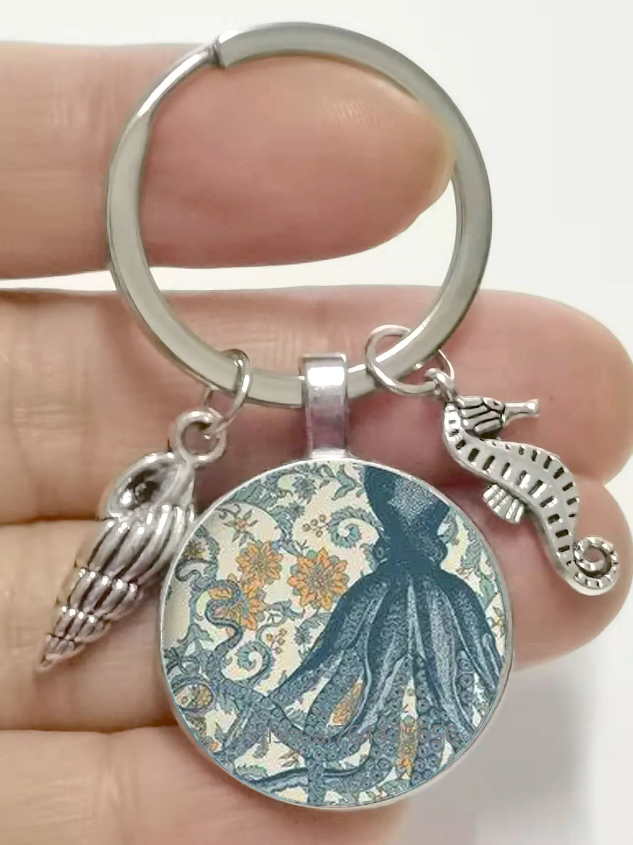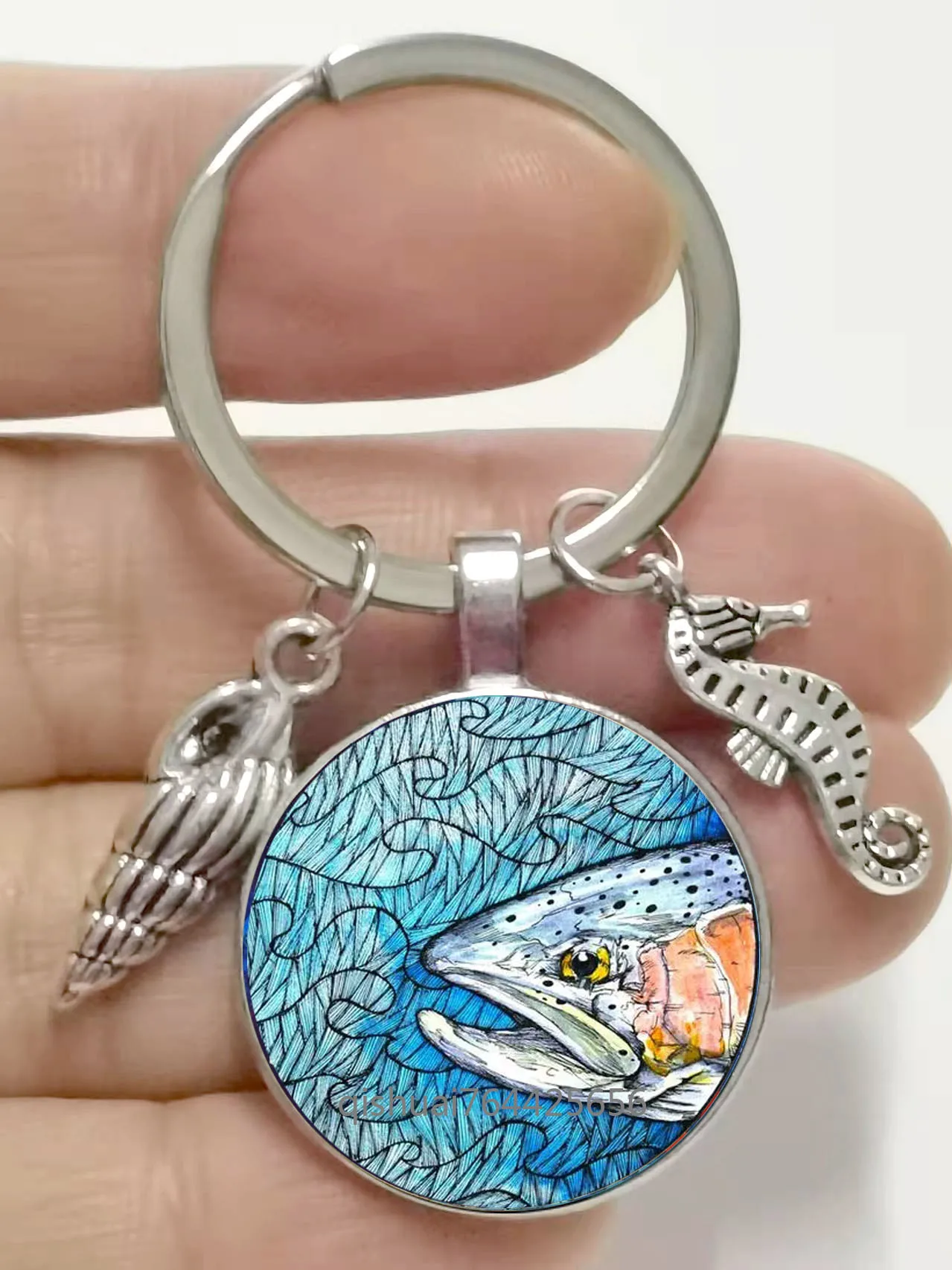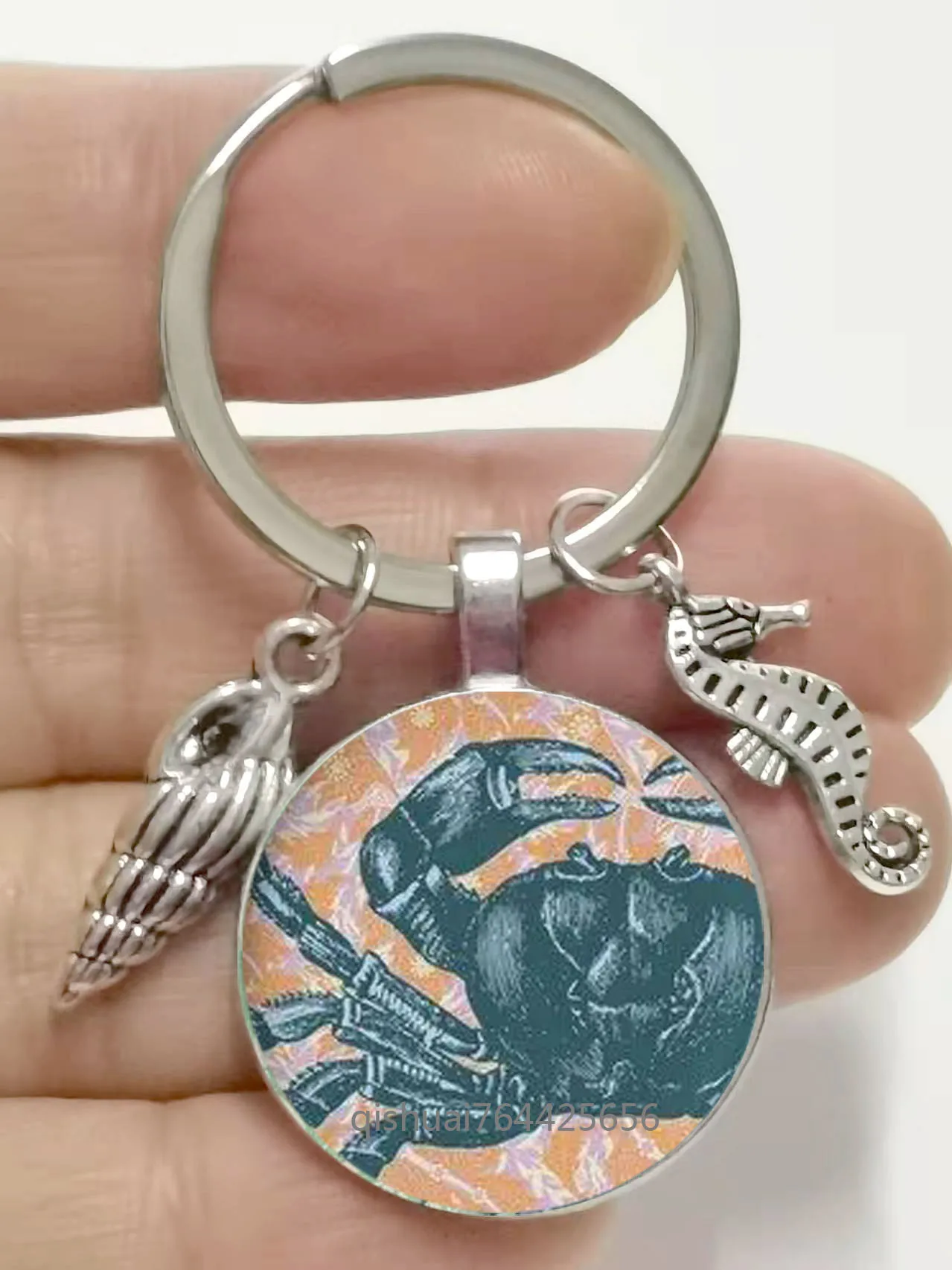 Брелок для ключей из сплава 2022, 25 мм, синий океан, морская жизнь, ювелирные изделия, черепаха, дельфин, ракушка, брелок, рождественский подарок