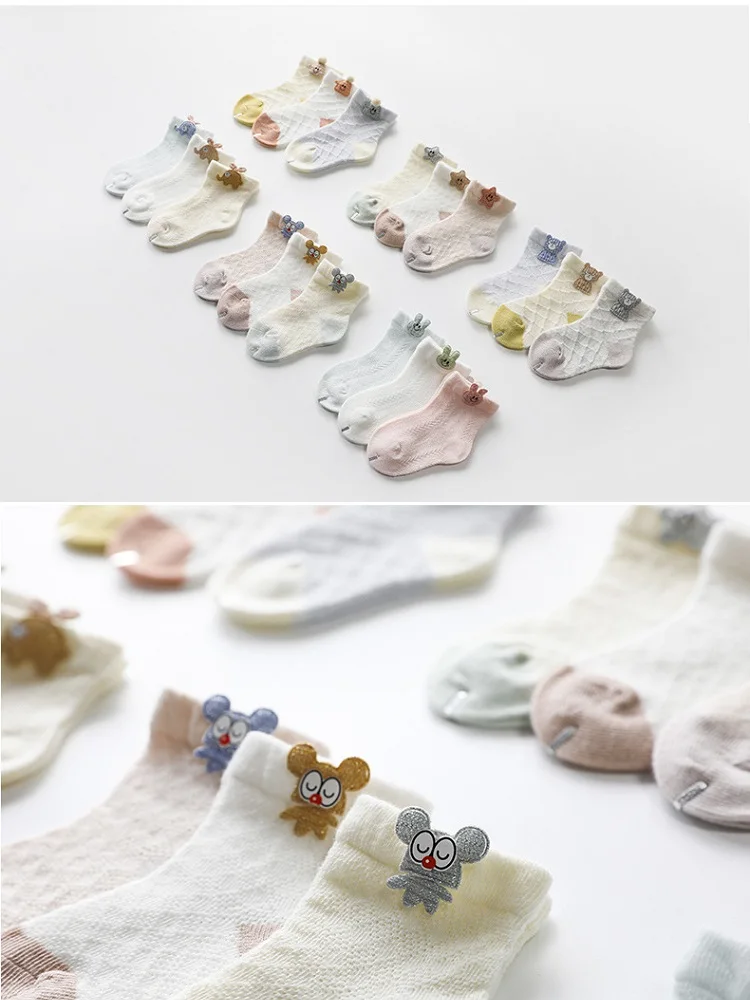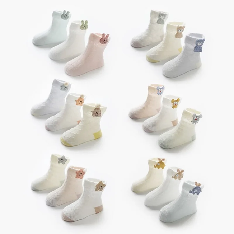Летние хлопковые носки для новорожденных, 3 пары, для маленьких мал...