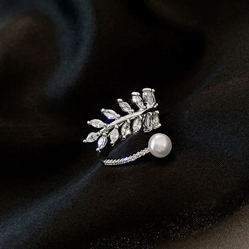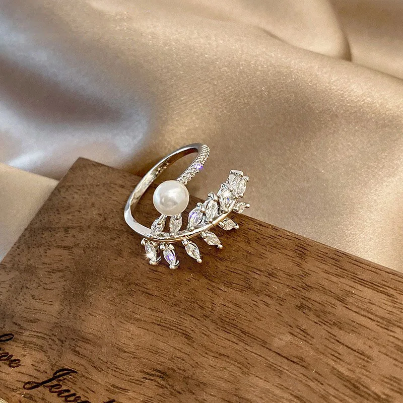 Женское кольцо с жемчугом и листьями, Элегантное открытое кольцо в Корейском стиле, 2022