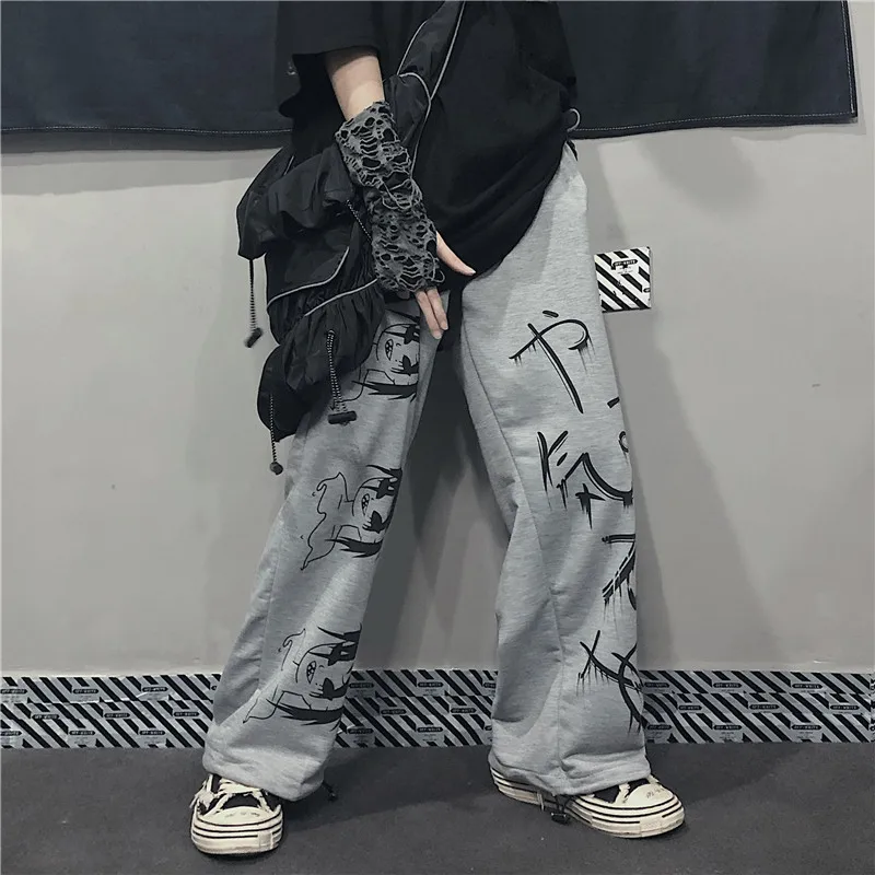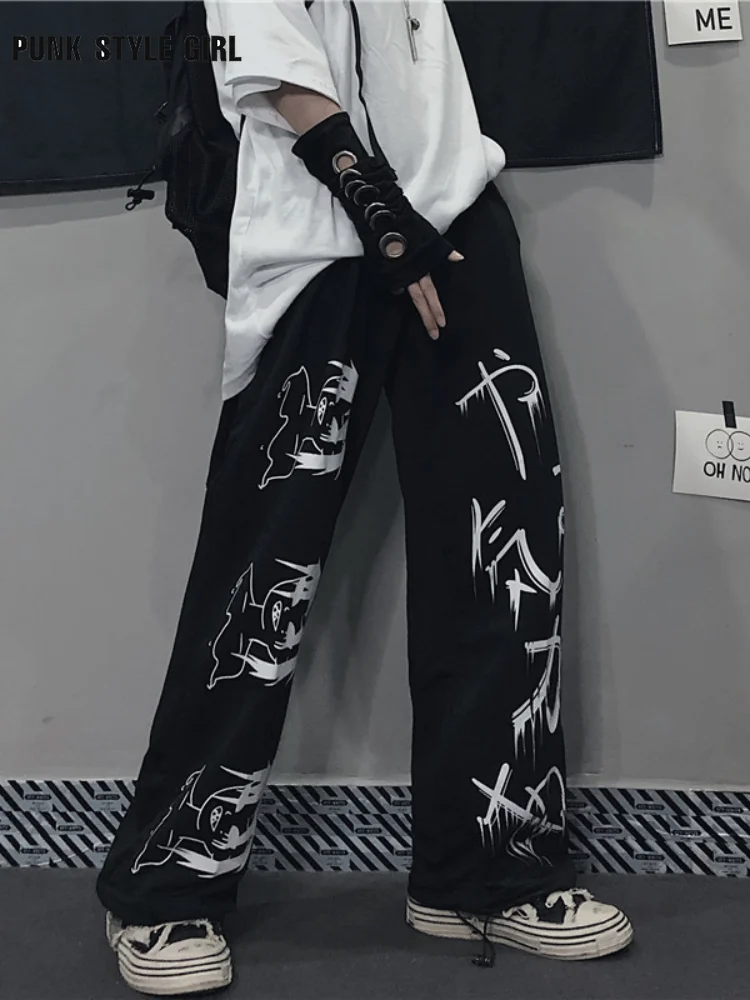 Кибер-джинсы в стиле Харадзюку, широкие штаны с мультяшным принтом E-Girl, одежда в стиле эмо, гранж, кавайные корейские брюки в стиле ольччан, аниме