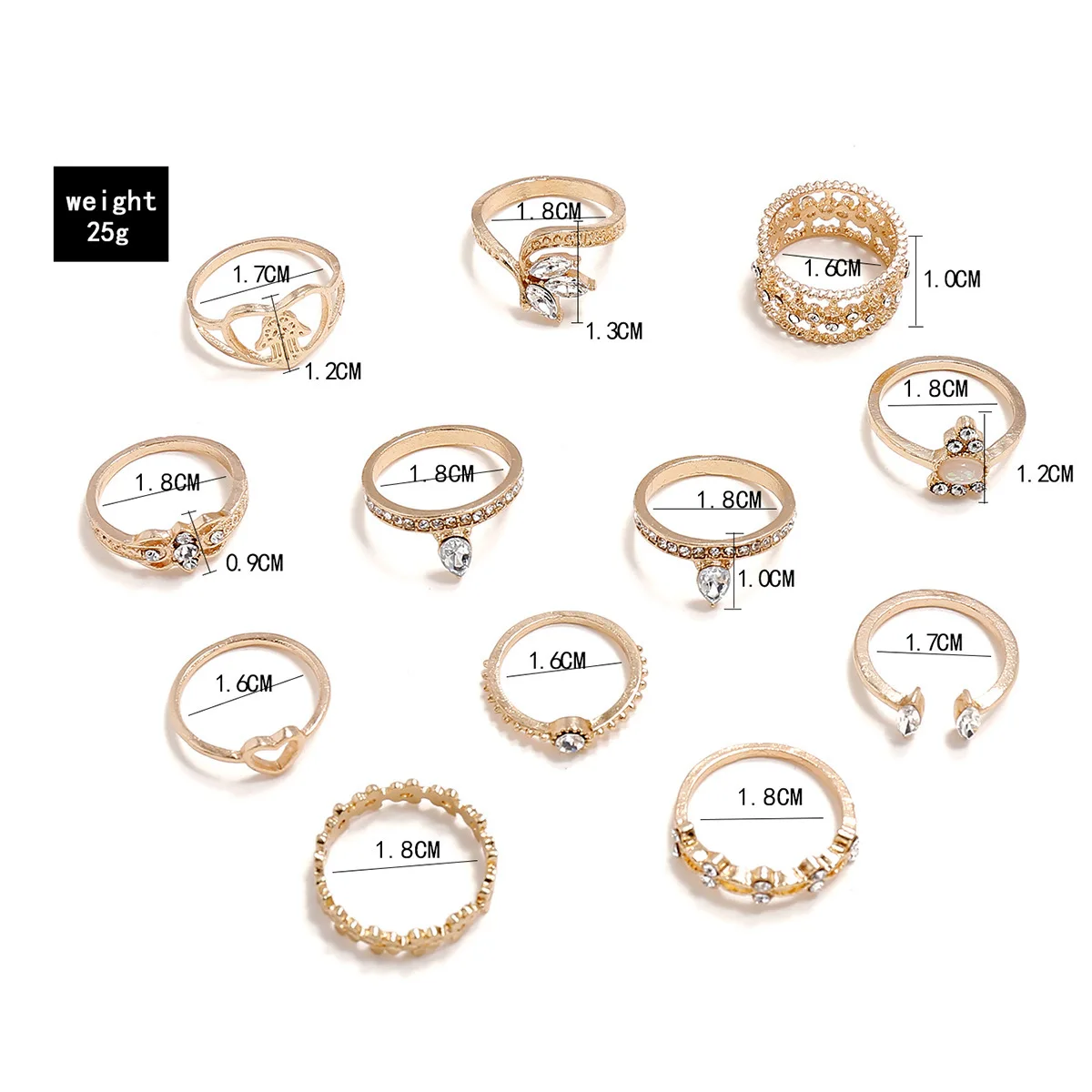 Letfi 12 шт.компл., богемное кольцо с золотым кристаллом, геометрич...