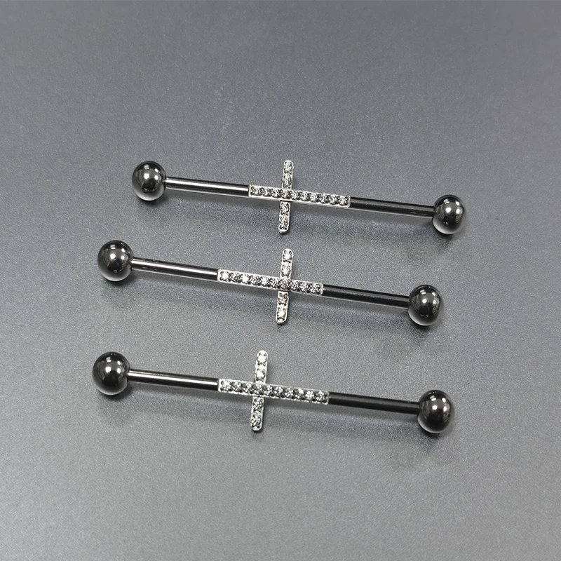 1 шт. 16 г 14 г Крест CZ промышленный Штанга пирсинг G23 Титан 38 мм прямой стержень хряща серьги пирсинг уха Штанга ювелирные изделия
