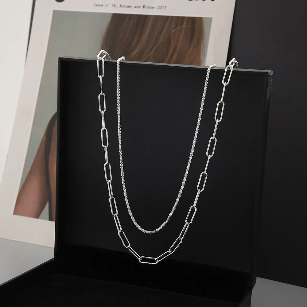 Новинка, яркое серебряное ожерелье ZYZQ в ретро-стиле для женщин, простая двухслойная цепочка до ключиц