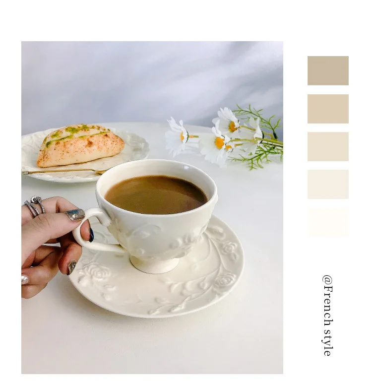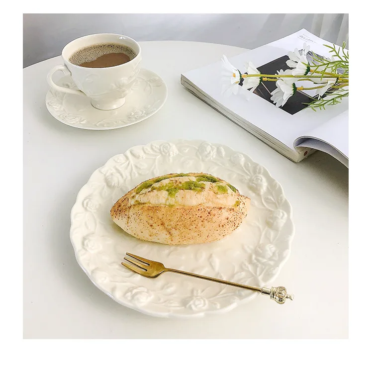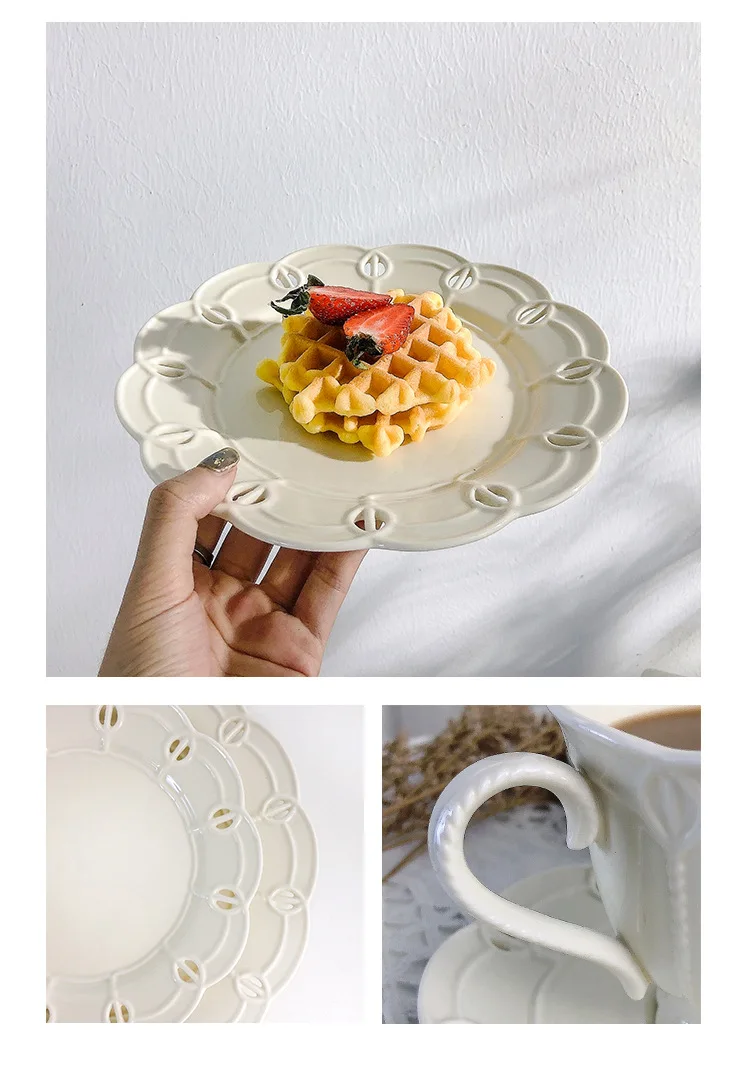 Чашка и блюдо в стиле ретро керамический набор рельефная тарелка дл...
