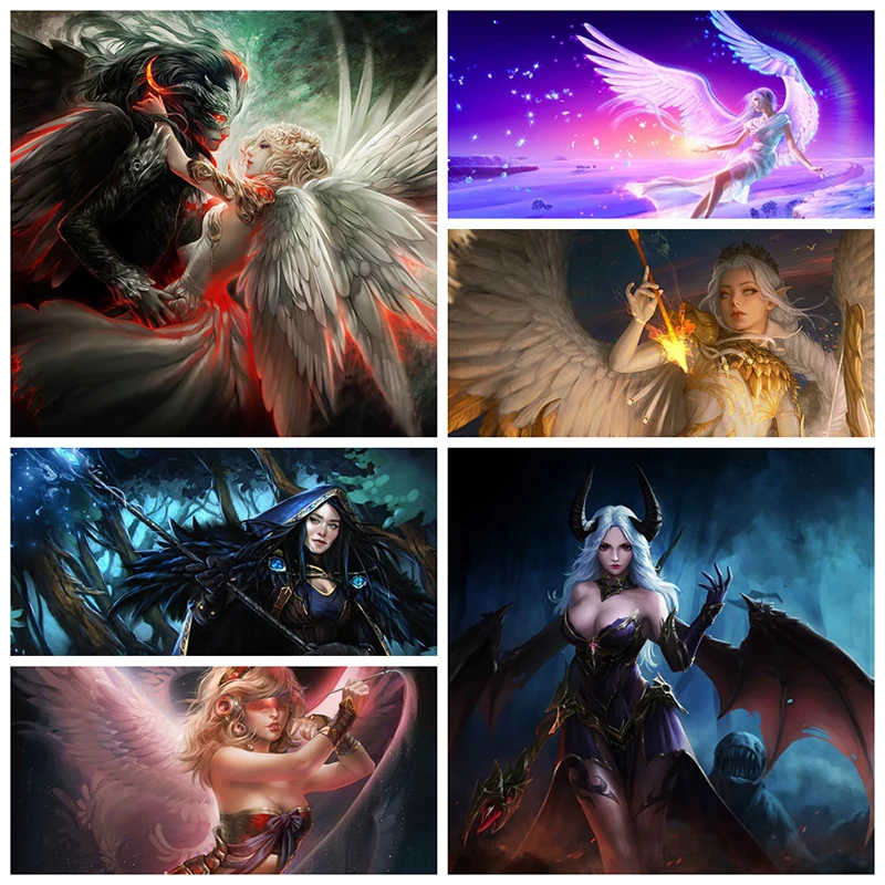 Алмазная живопись 5D, картина, ангелы, демоны, красота, девушка, Женская Вышивка стразы, искусственный подарок, домашний декор