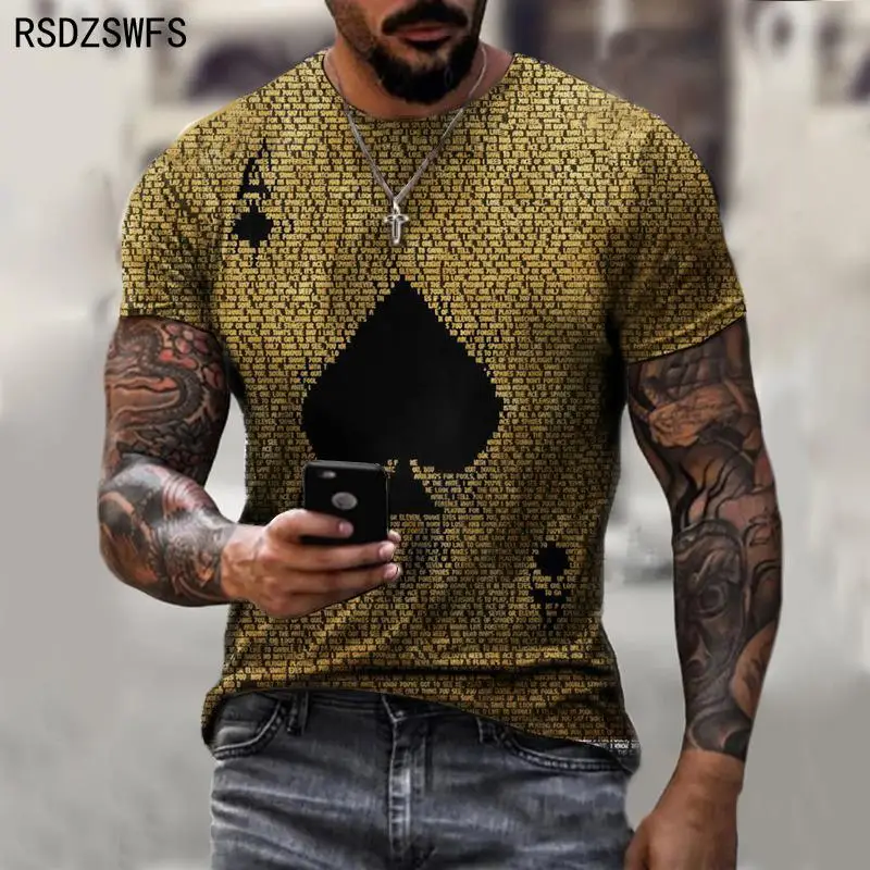 Футболка мужская с принтом игральных карт, свободная рубашка с 3D рисунком карты Ace, летняя уличная одежда в строгом стиле