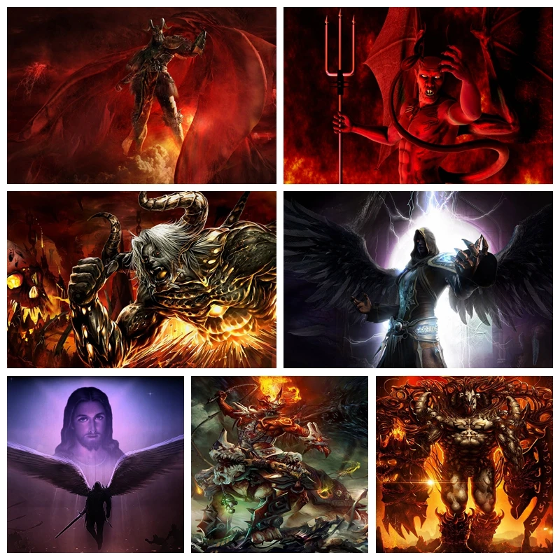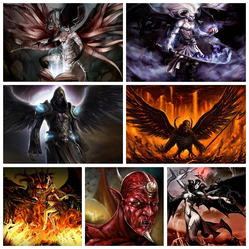 Алмазная живопись 5d "Ангелы", "сделай сам", "Демоны", "Сказочная вышивка крестиком, мозаика, вышивка пейзажем, подарок, искусство ручной работы, домашний декор