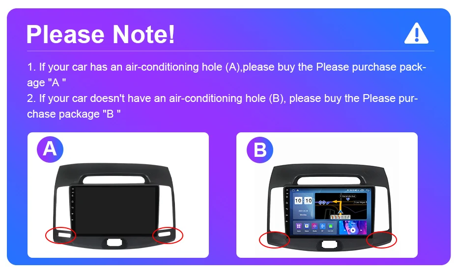 1. Если у вашего автомобиля есть отверстие для кондиционирования воздуха (A), пожалуйста, купитеПожалуйста, приобретите посылка "A"