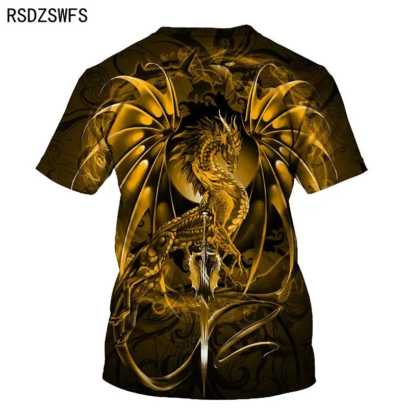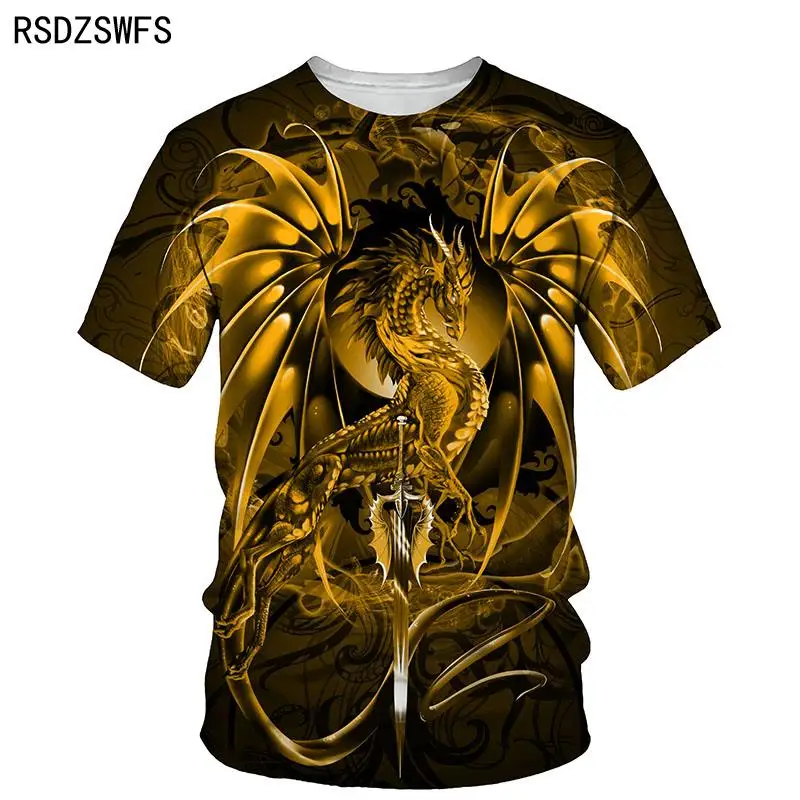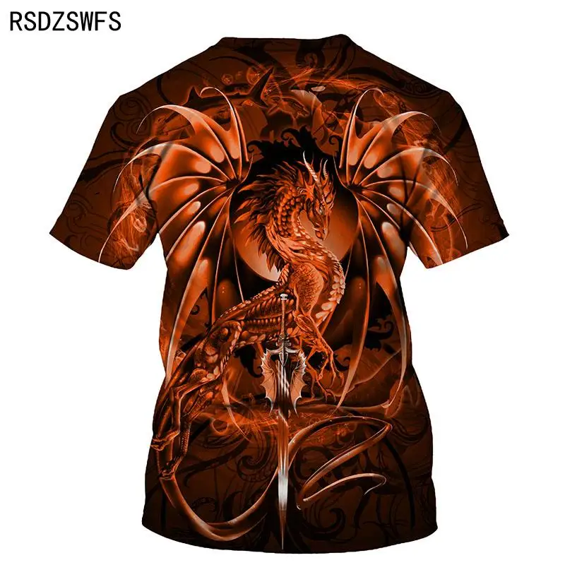 Футболка мужская с круглым вырезом, короткий рукав, 3d-принт, Повседневная модная рубашка, топ в западном стиле дракона, лето 2021