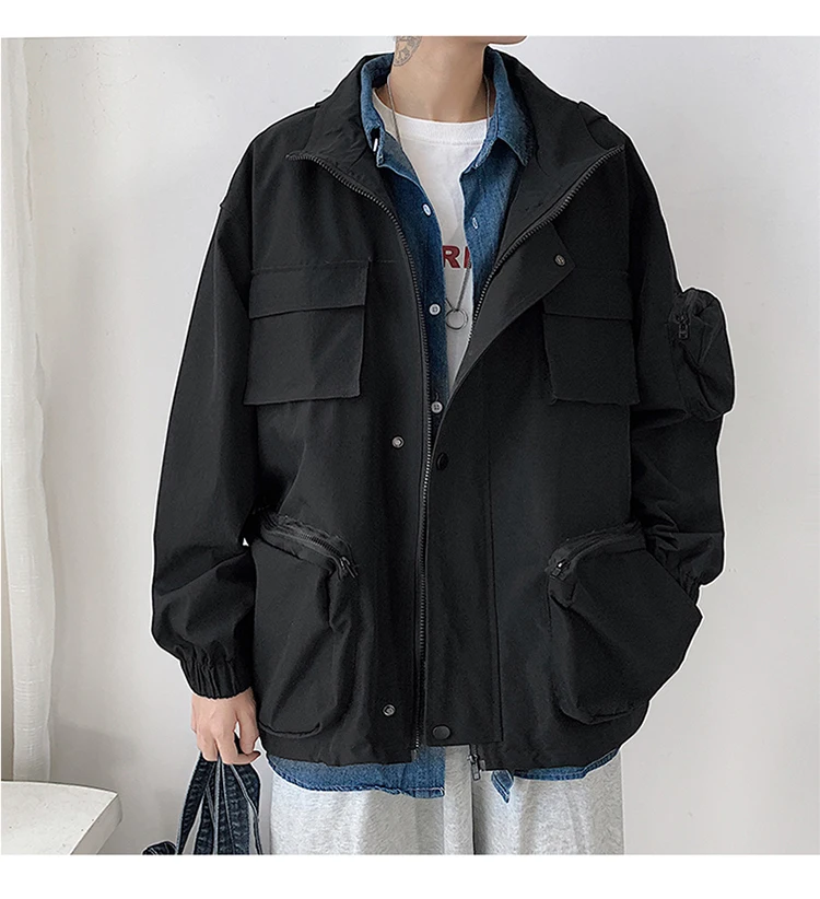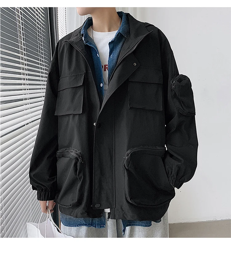 Куртка мужская демисезонная с капюшоном, однотонная, в стиле хип-хоп