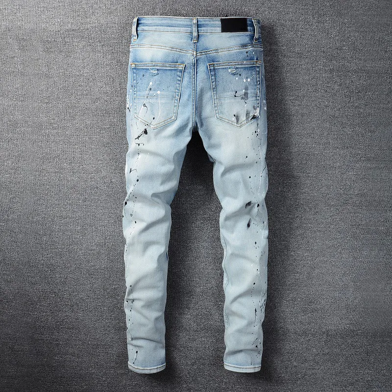 Новинка 2022, модные мужские джинсы-брызги с рисунком, облегающие д...