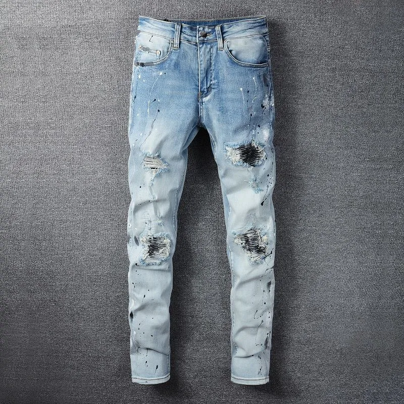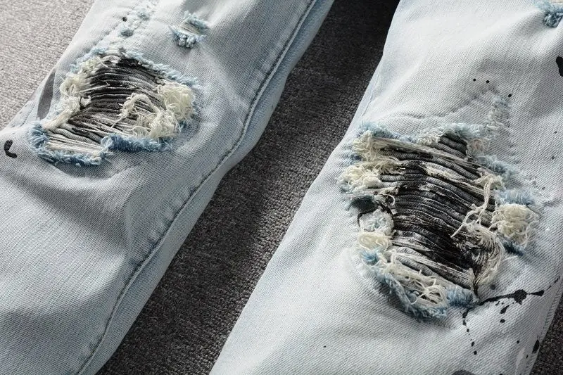 Рваные джинсы с эффектом потертости, штаны с зауженными штанинами светло-голубого цвета, мужские брюки 2022, мужские джинсы с графическим принтом, уличная одежда, черные мужские джинсы
