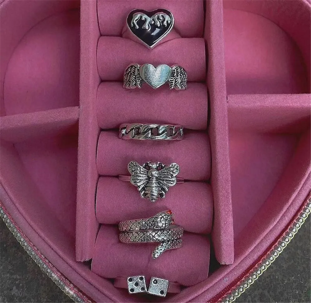 Набор колец в стиле панк для покера и бильярда для женщин, винтажные готические кольца в форме сердца в стиле хип-хоп, Y2k, корейский стиль, Подарочные ювелирные изделия для мужчин