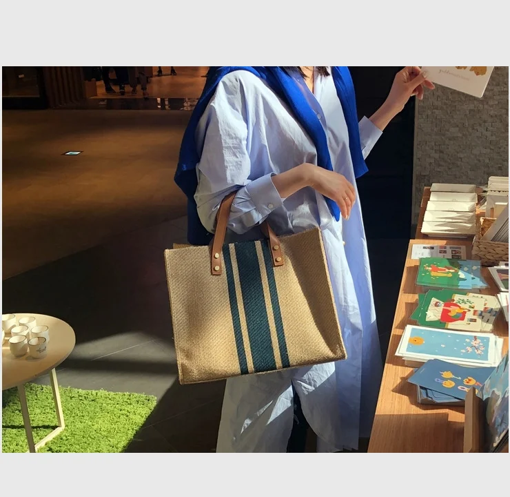 Вместительная сумка, простая модная женская сумка, винтажная полосатая Сумка-тоут для женщин, портативный деловой портфель Ol в Корейском стиле для мужчин