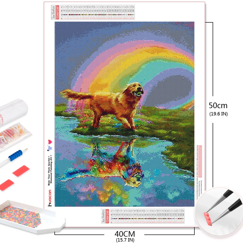 Алмазная живопись HUACAN 5D, собака, животное, сделай сам, Алмазная мозаика, радуга, полная выкладка, квадратнаякруглая вышивка