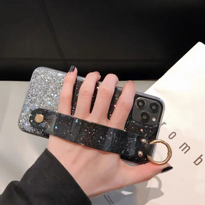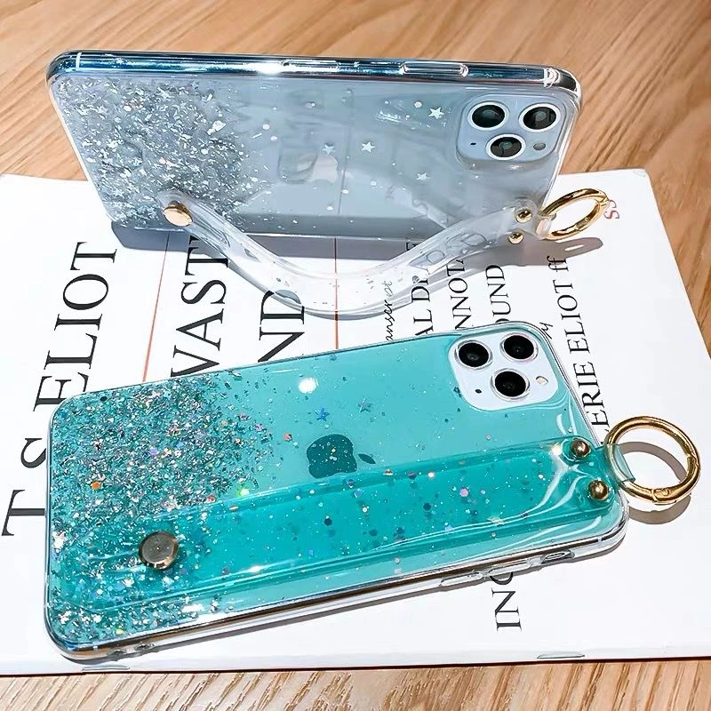 Чехол для телефона с блестящим порошком для iPhone 11 Pro XS Max X XR XS 6 6 S 7 8 Plus, прозрачный мягкий чехол из ТПУ с ремешком на запястье и задней крышкой