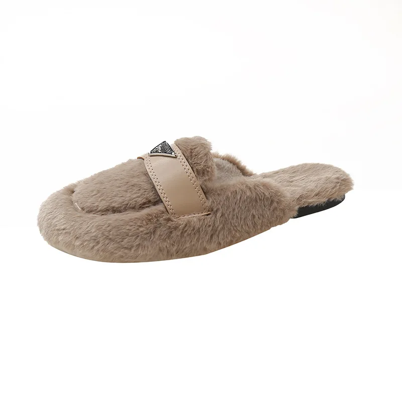 Шлепанцы женские зимние водонепроницаемые, меховые плюшевые шлепанц...