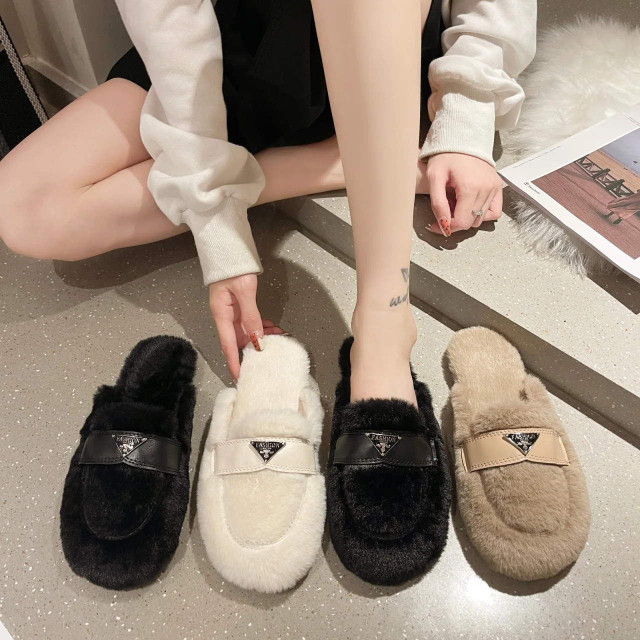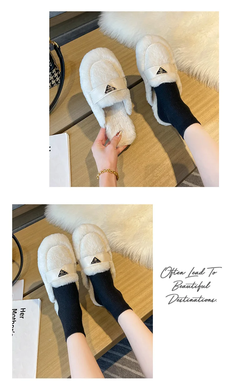 Женские зимние слипоны, домашние пушистые Женские повседневные туфли для дома, женская модная теплая плюшевая домашняя обувь, новинка 2022