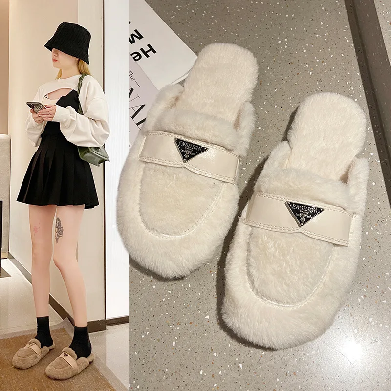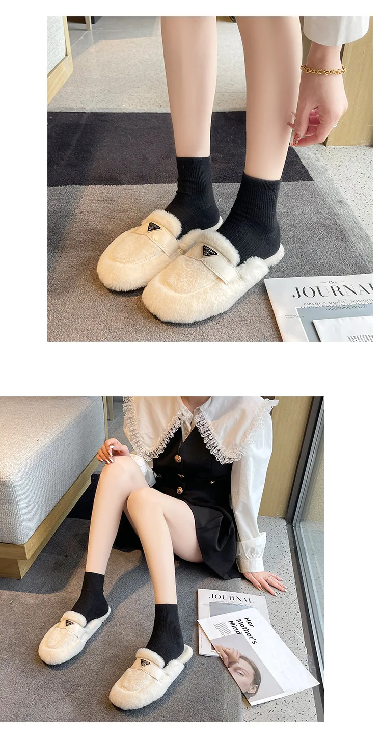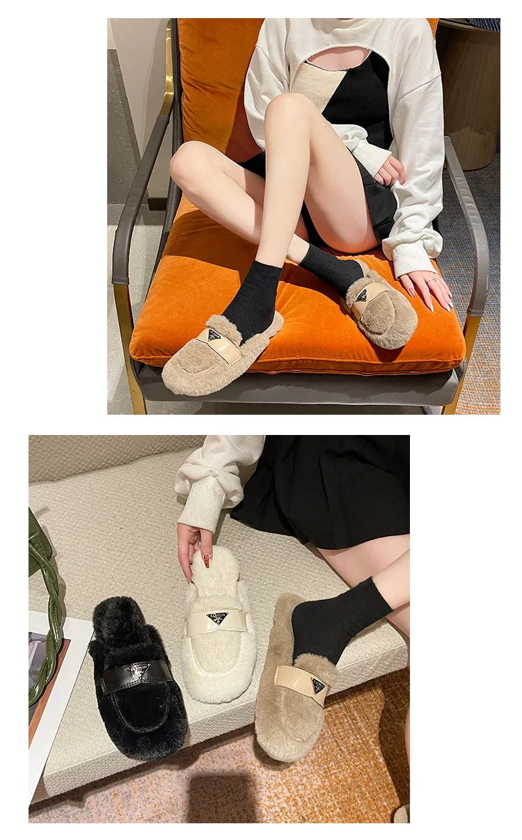 2022 зимние шерстяные пушистые женские тапочки, хлопковые сандалии ...